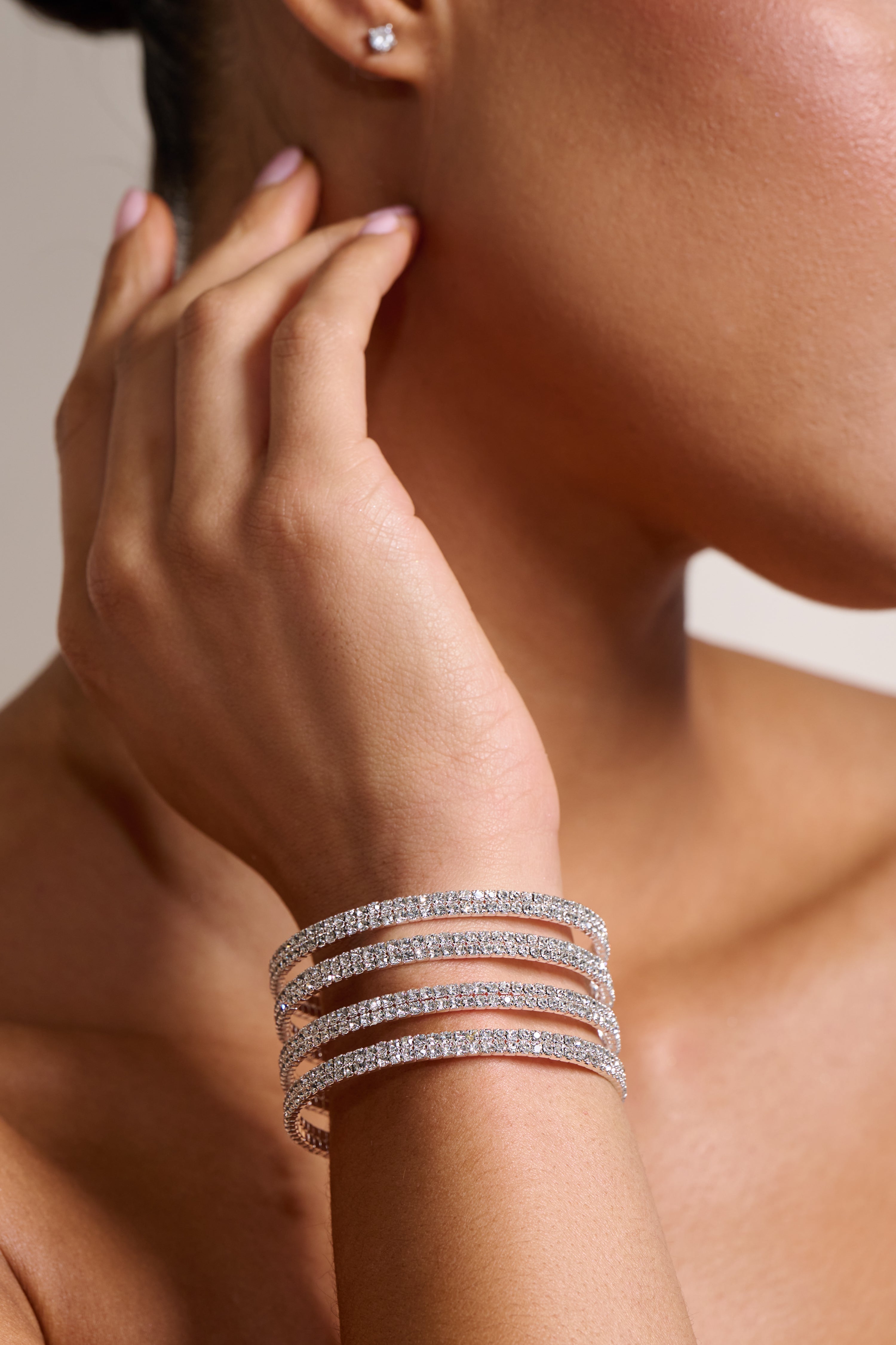 Heloise Silver Diamante Layered Bracelet