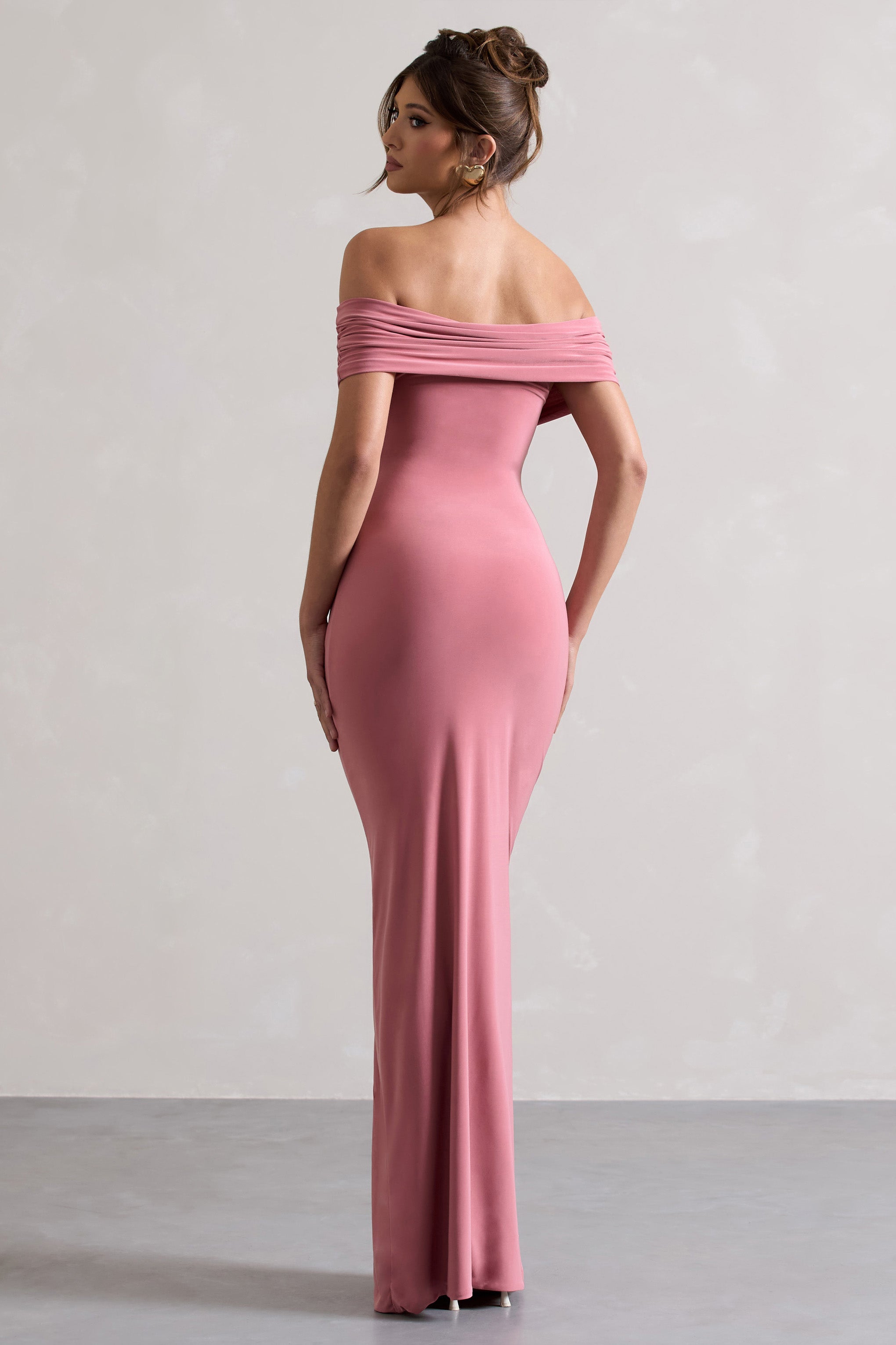 Refined Blush Pink Twist Front Bardot Maxi Dress
