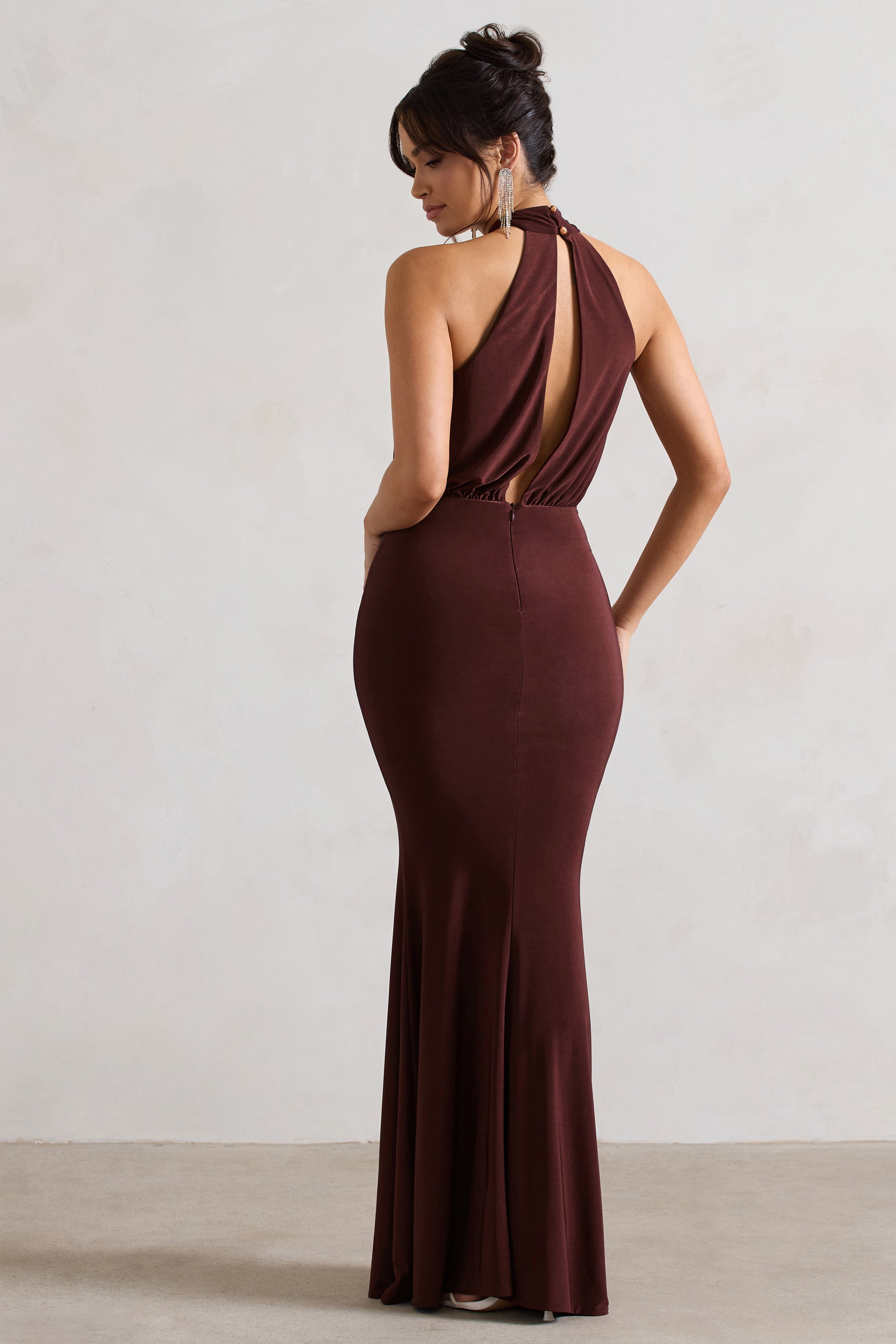Vanessa Chocolate Brown Knot Halter-Neck Maxi Dress