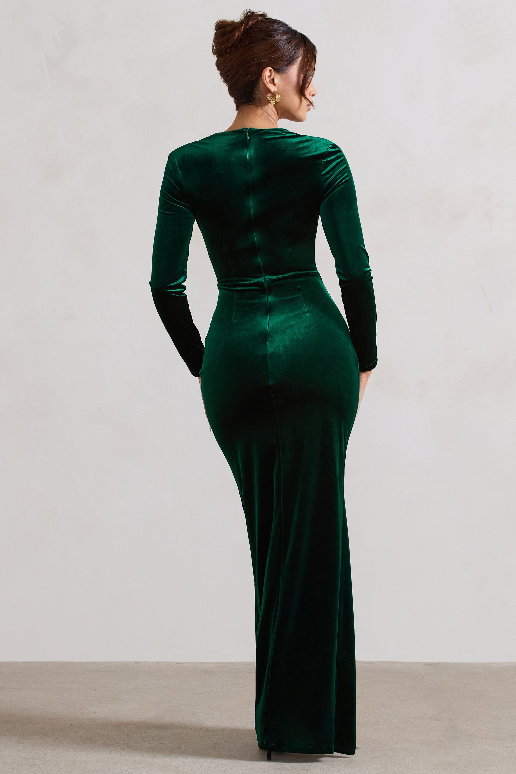 Fay Bottle Green Velvet Corset Style Knot Maxi Dress
