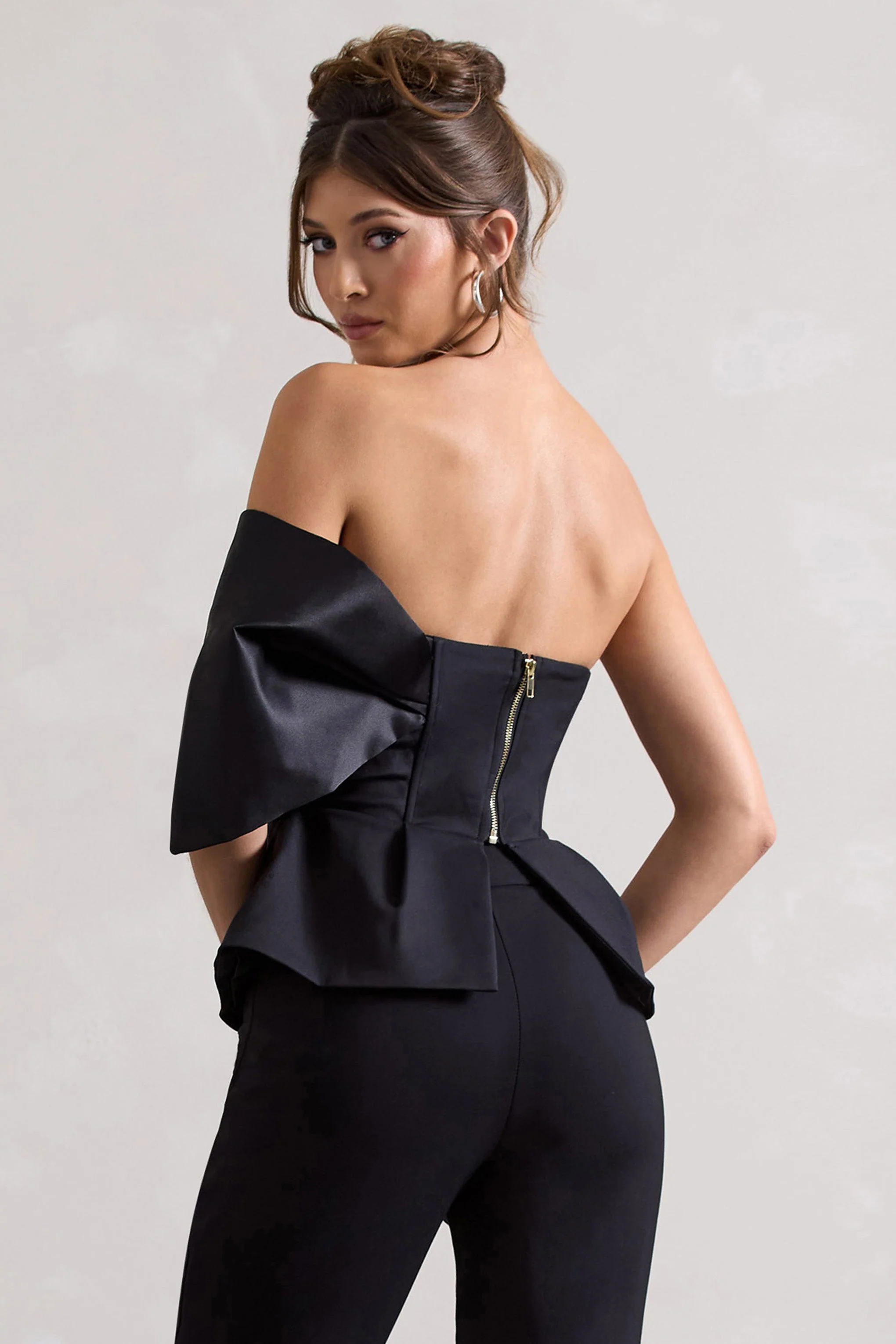 Navy Bodycon Bandeau Midi Dress With Peplum Detail