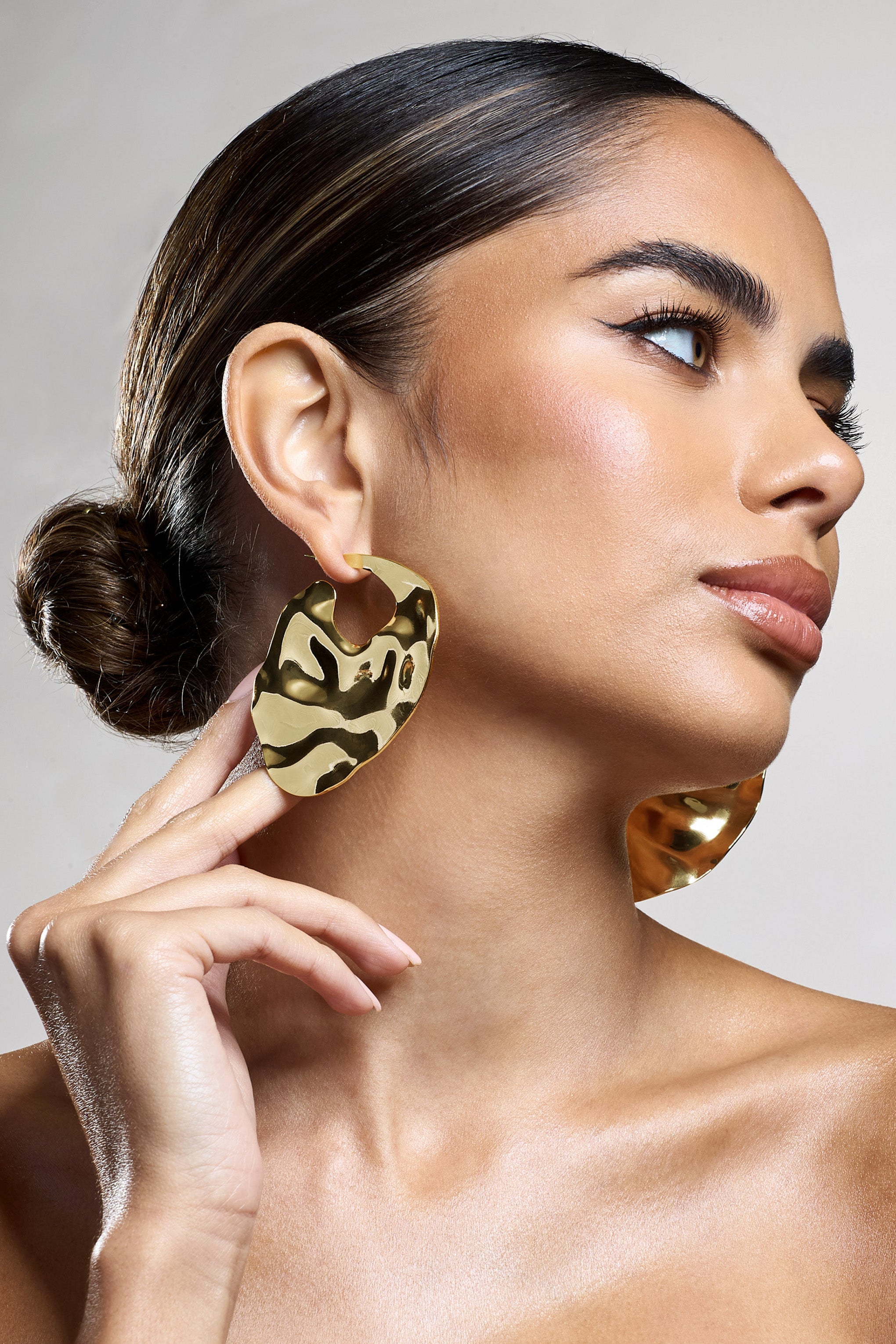 Ibiza Gold & Blue Diamante Chunky Hoop Earrings