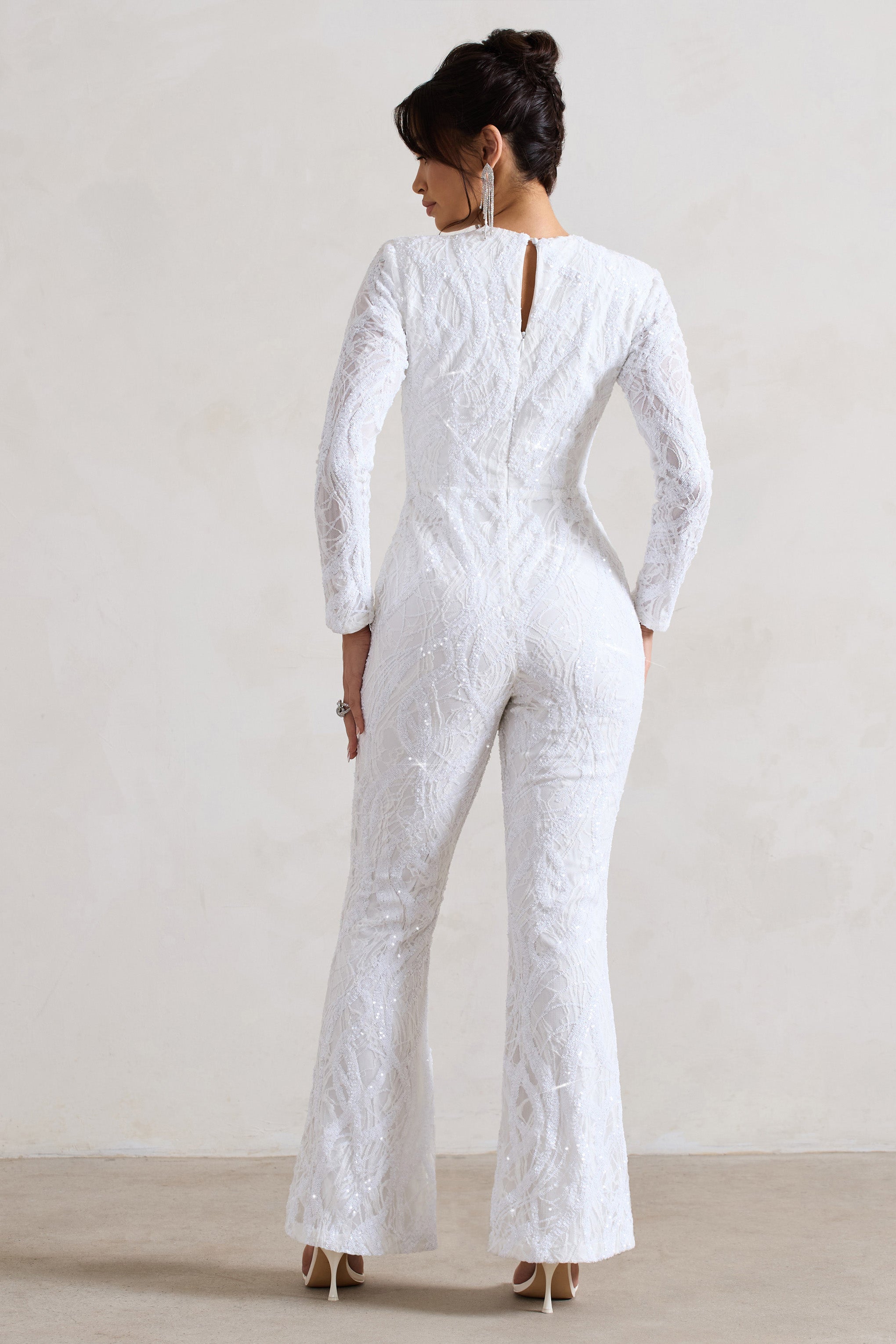 Vesper White Sequin Wide-Leg Jumpsuit