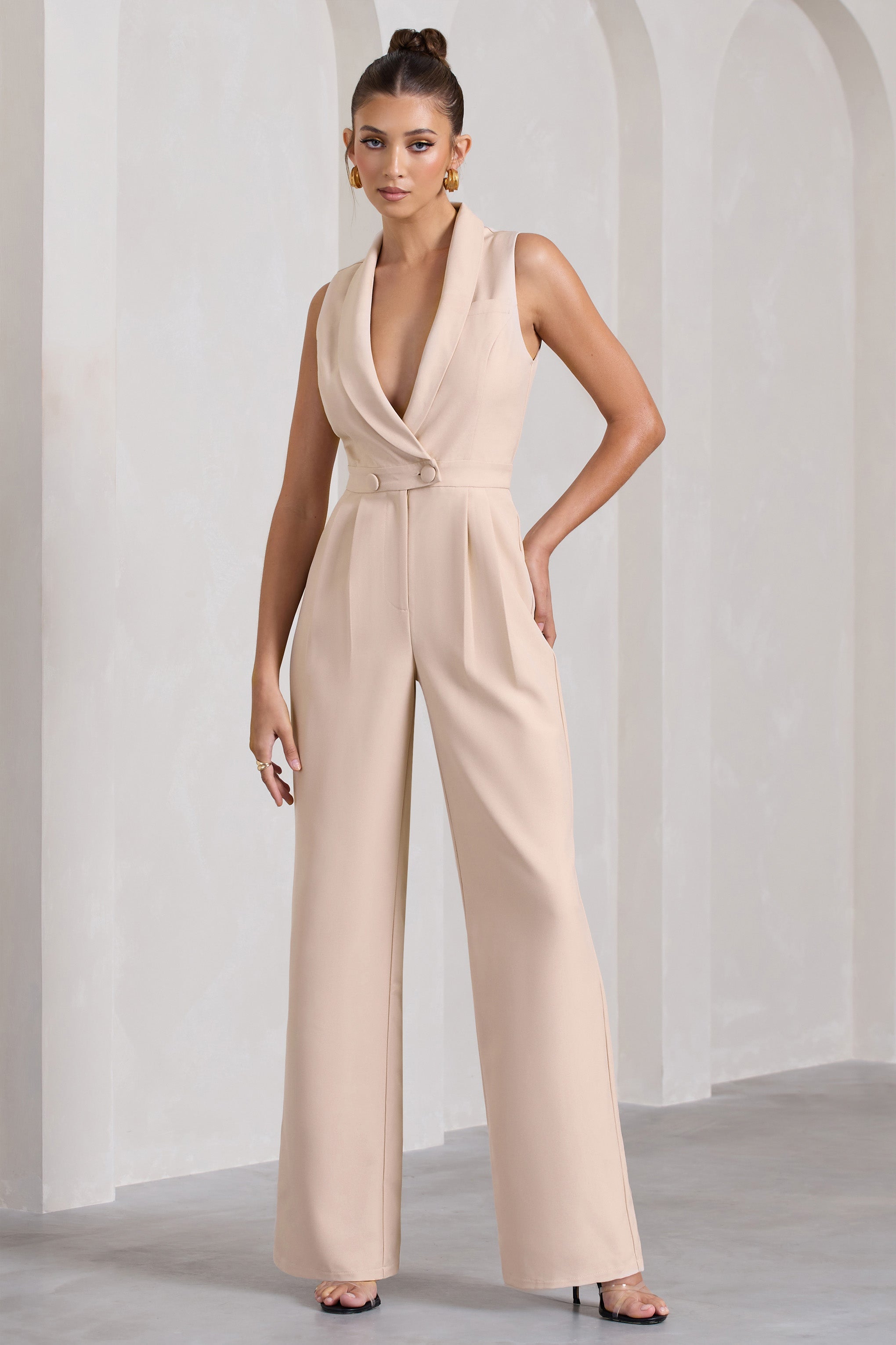 Endure Stone Tailored Sleeveless Wide-Leg Jumpsuit