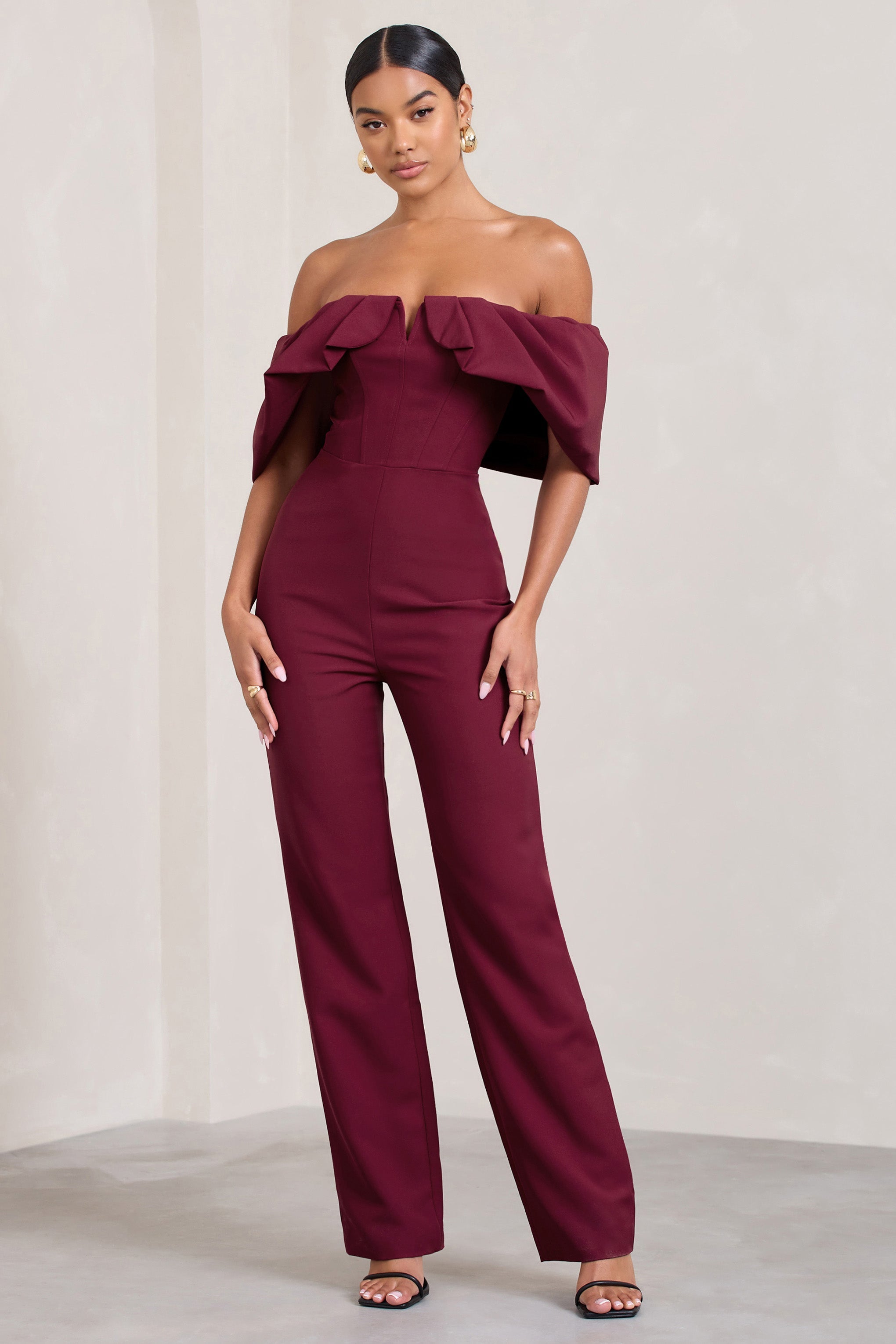 Time Will Tell Berry Off The Shoulder Wide Leg Jumpsuit