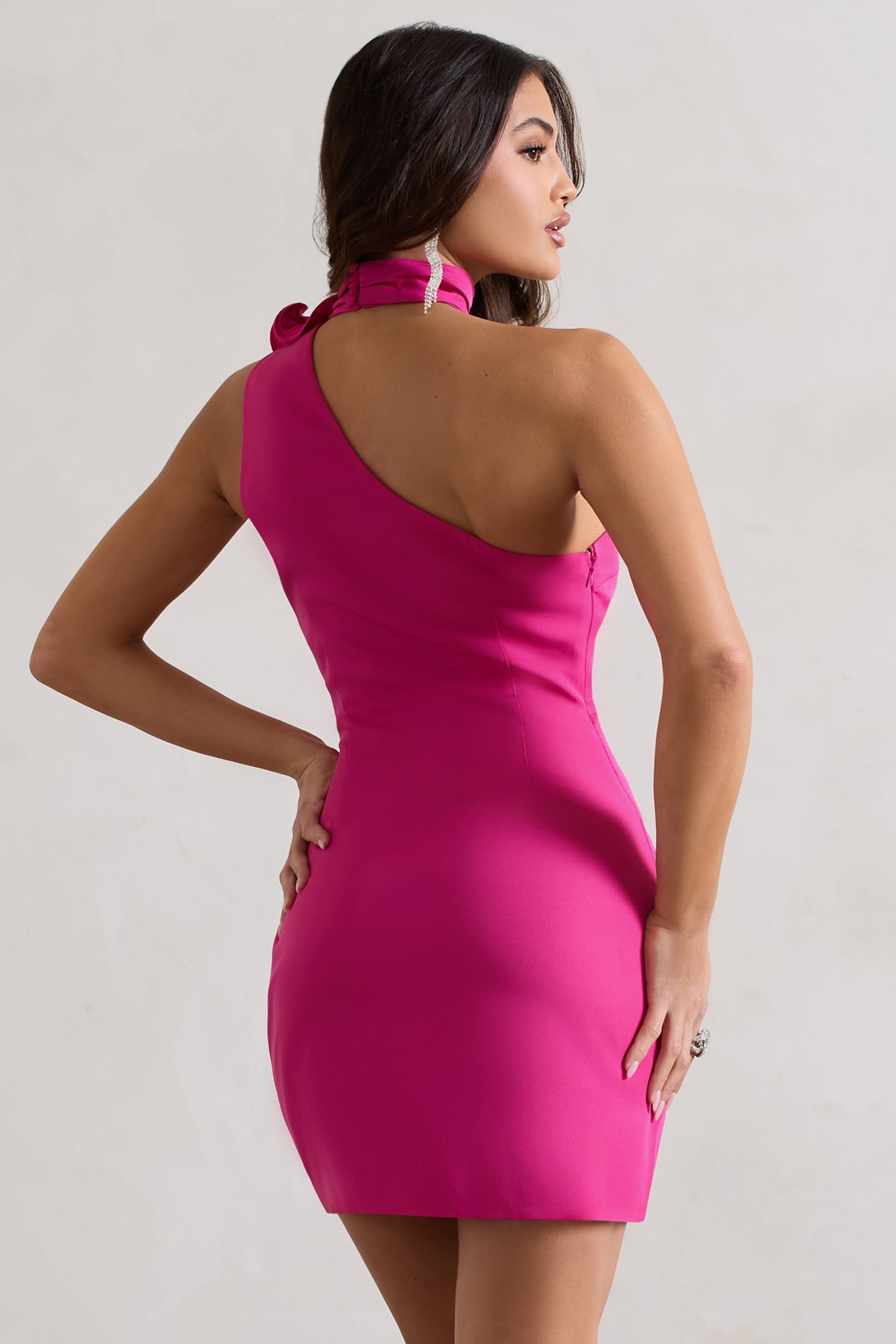 The Social Dark Pink Mini Dress With Ruffled Choker