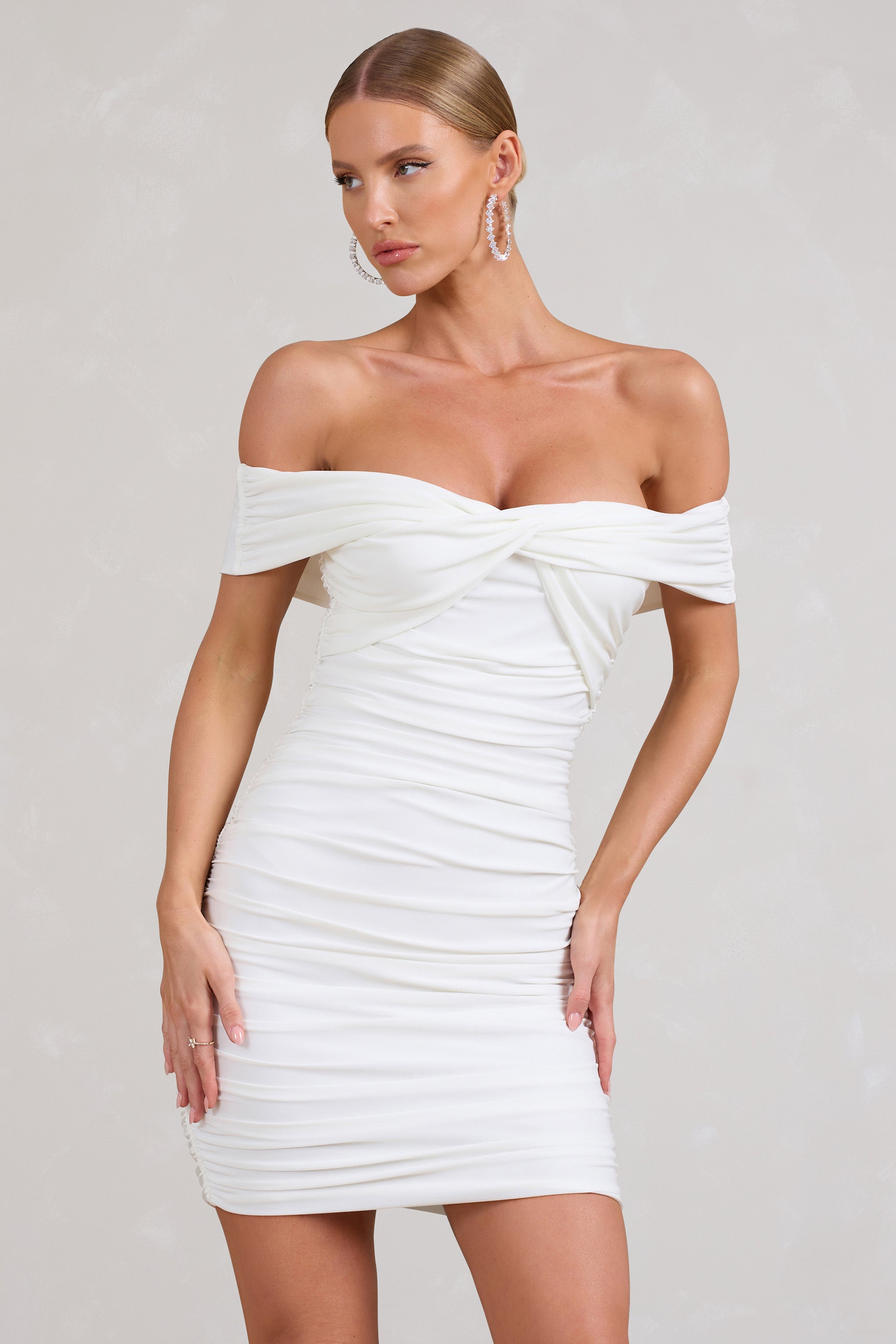 Appreciate White Off The Shoulder Ruched Mini Dress