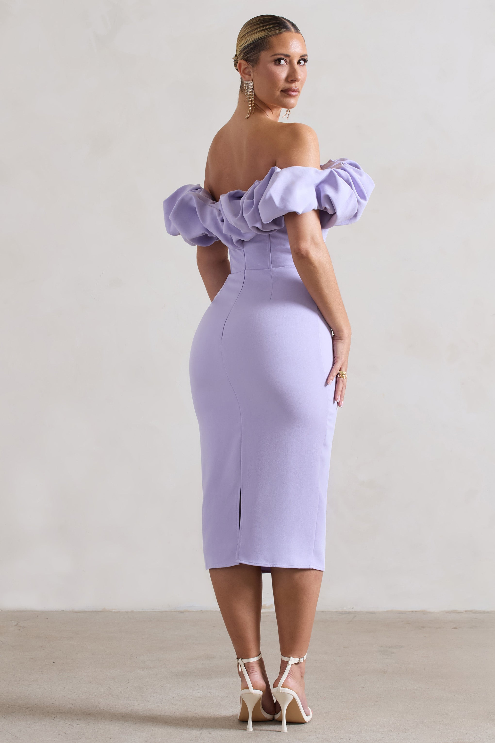 Amie Lilac Structured Ruffle Bardot Midi Dress