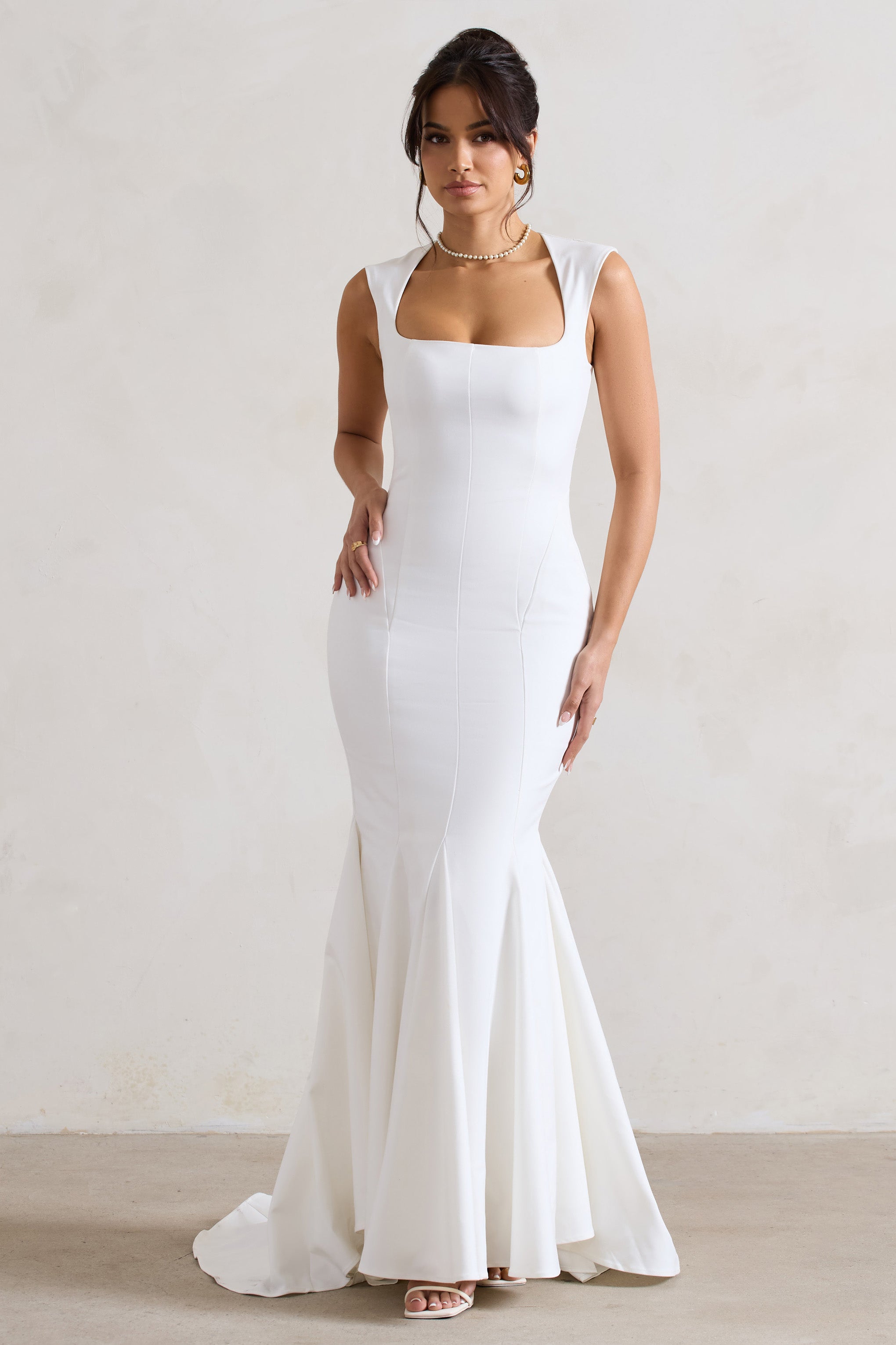 Adore You Cream Square-Neck Structured Fishtail Maxi Dress