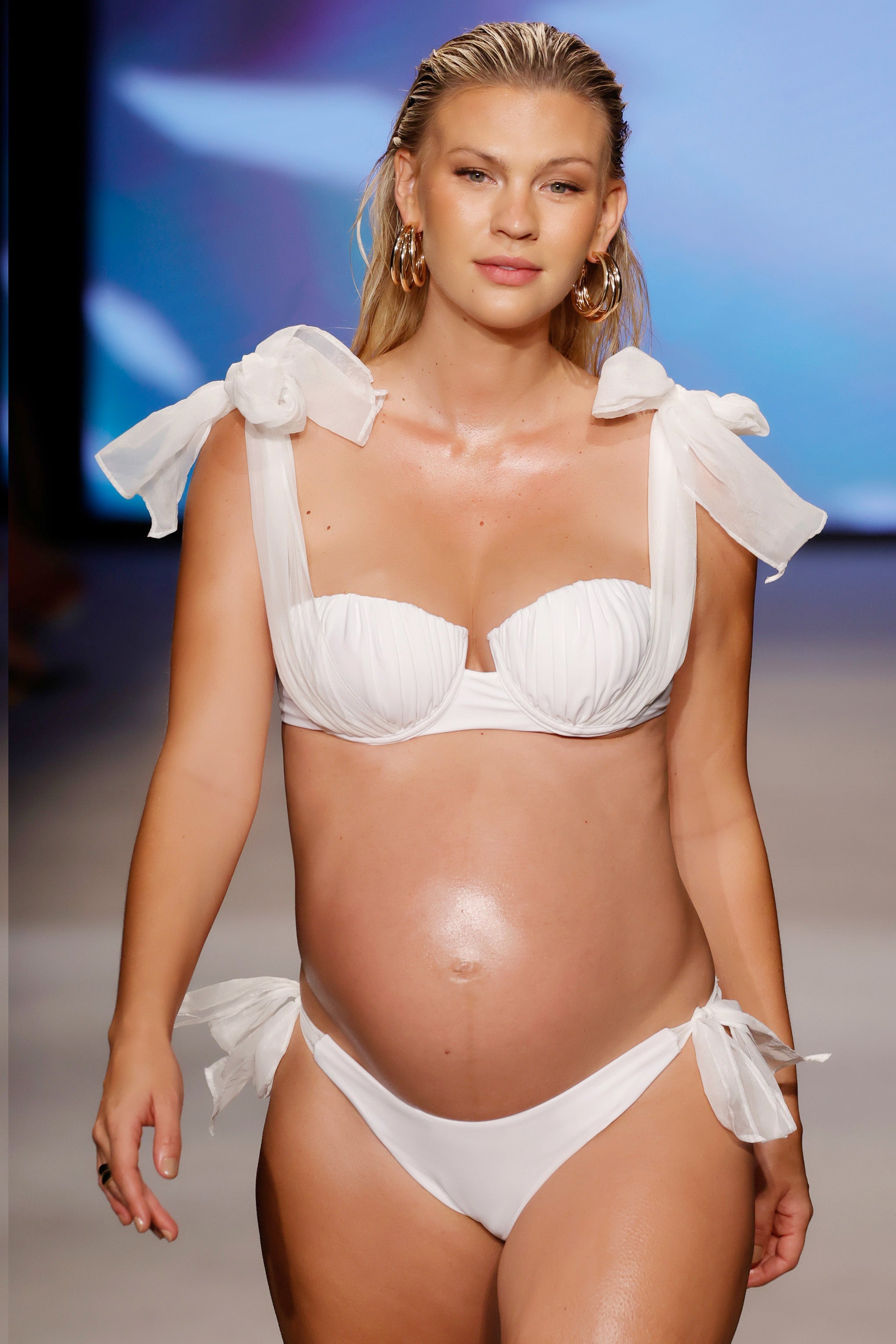 Set your sites on sunnier coastlines wearing our latest premium bikini top. Afloat. The perfect match to our Adrift bikini bottoms. this suitcase essential is designed in a white nylon blend with ruched cups and large organza bows that can be seen from off shore.