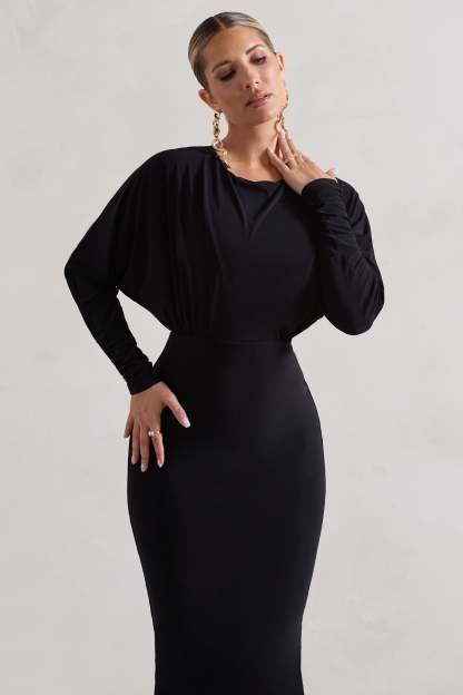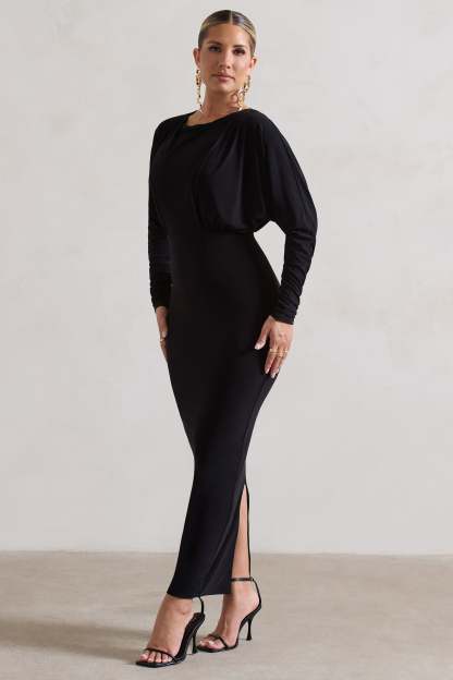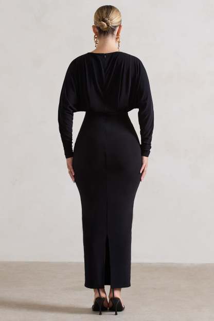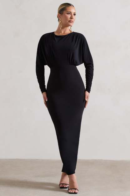 All It Takes Black Long-Sleeve Draped Maxi Dress