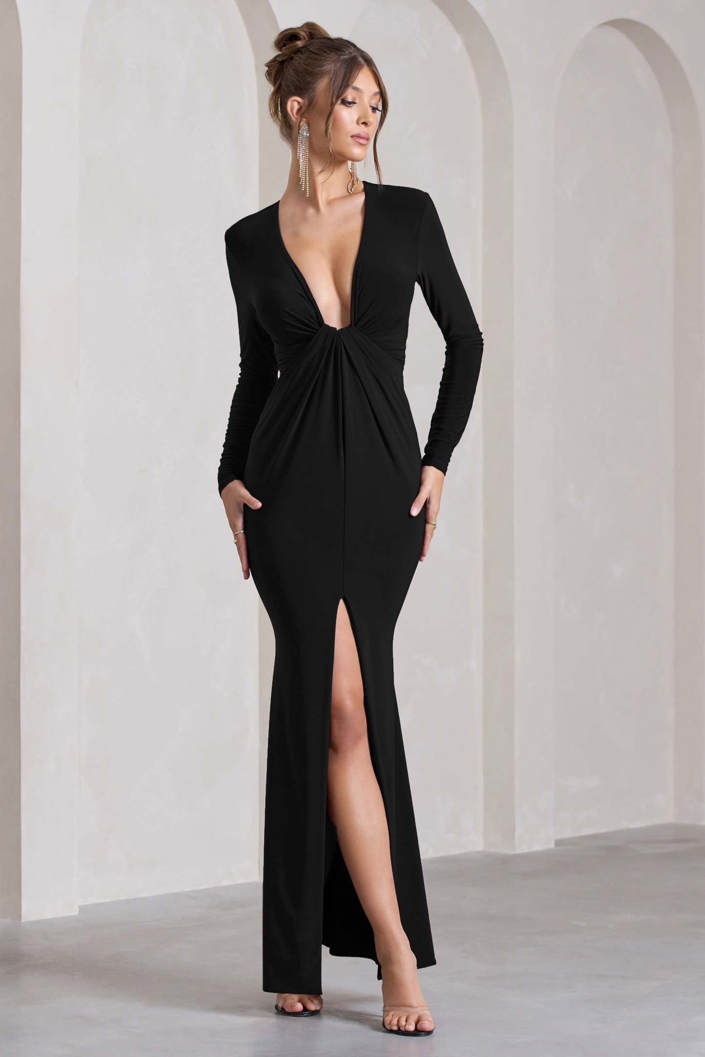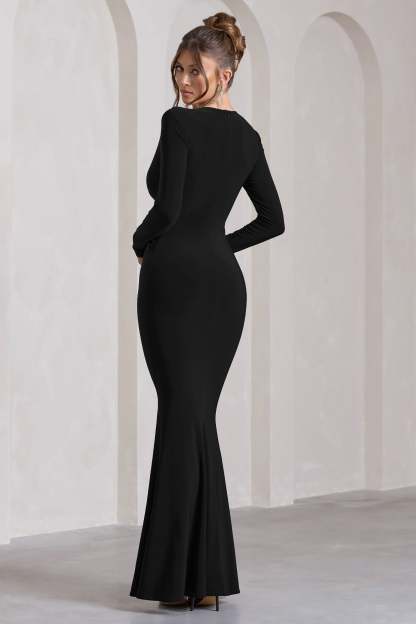 Aluna Black Plunge-Neck Twisted Split Maxi Dress