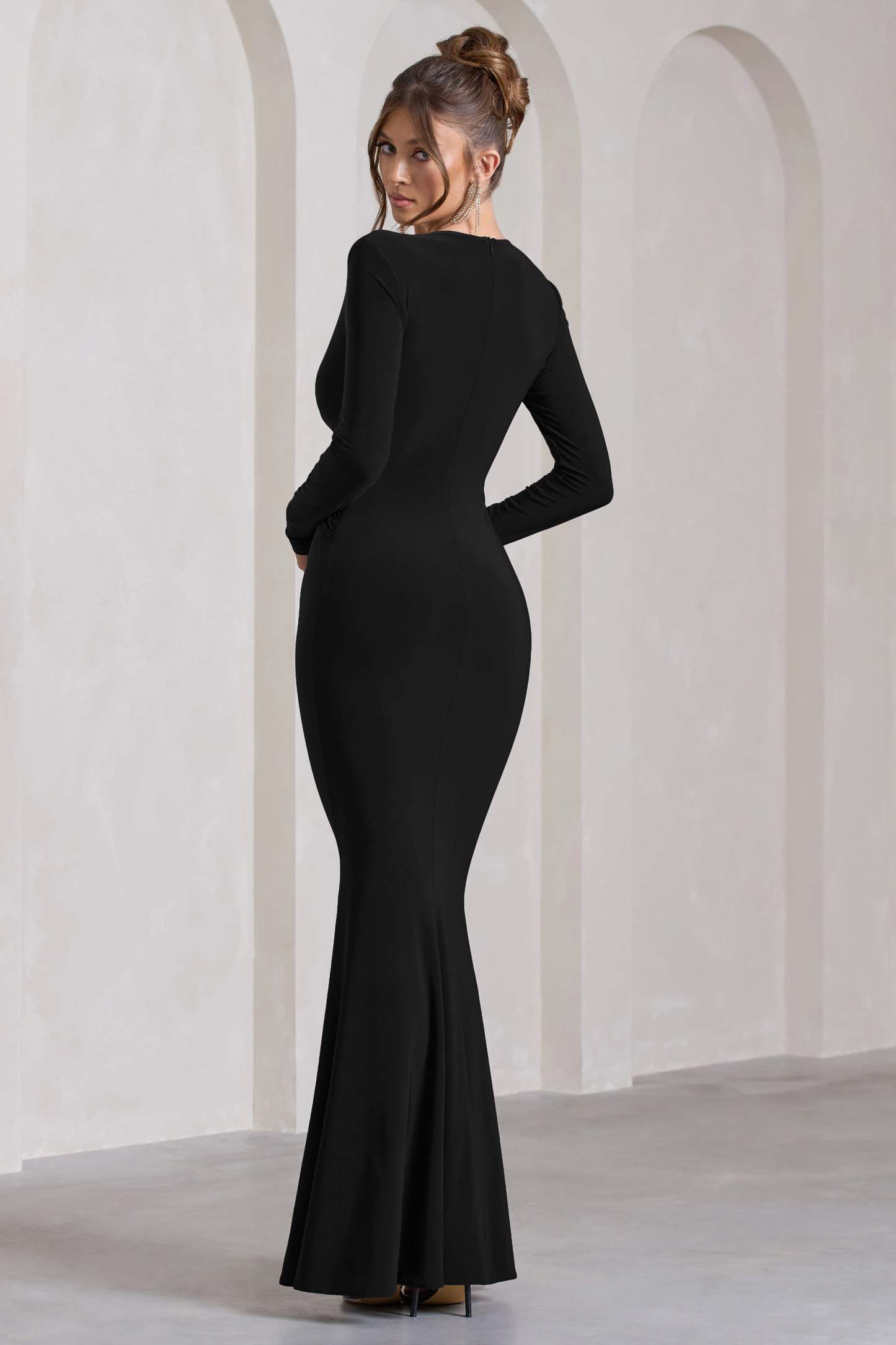 Exude effortless elegance with Aluna. a formal wardrobe must-have. Designed in a premium stretch jersey known for its sculpting capabilities. this black maxi dress is defined by a curve-hugging knot that carefully cinches your waist. Complete with an alluring high-leg split. Aluna would make an elegant choice for an upcoming wedding event.