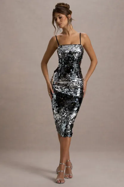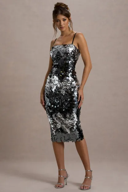 Silver Sequin Strappy Midi Dress