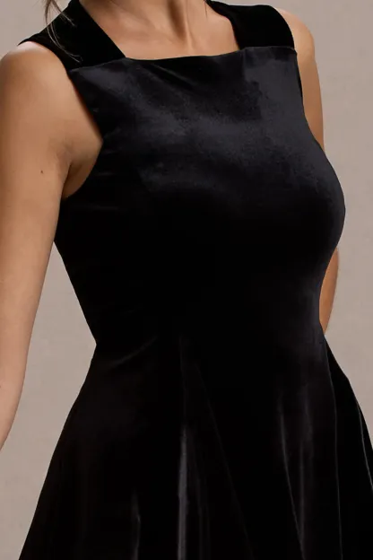 Black Velvet Draped-Hem Mini Dress