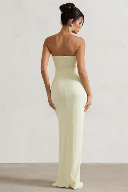 Ecru Crinkle Strapless Cut-Out Maxi Dress With Twist