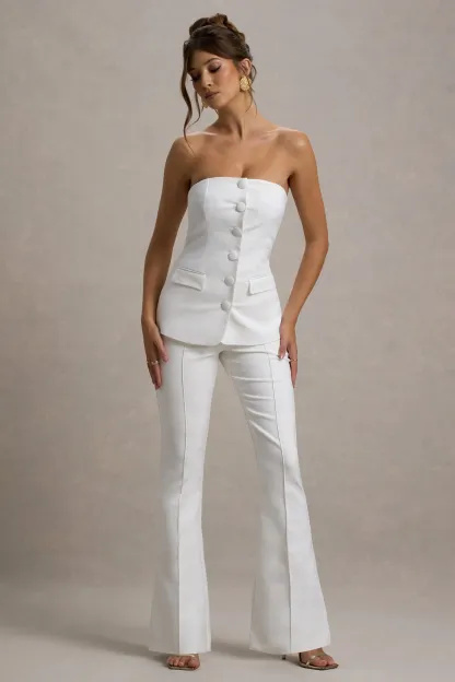 White Flared-Leg Tailored Trousers