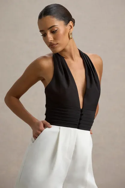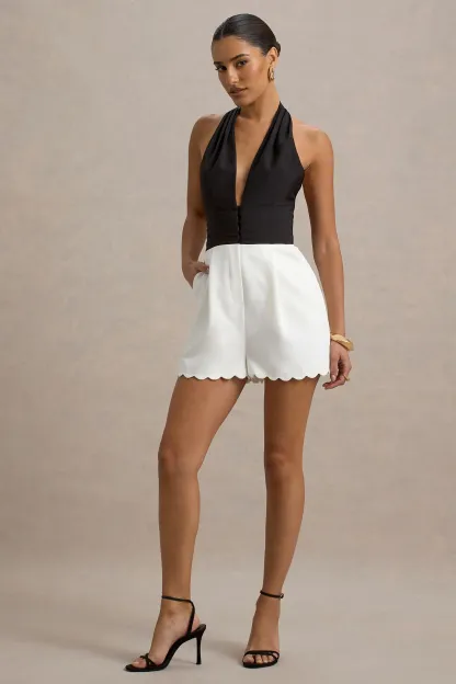 Black & Ecru Plunge-Neck Playsuit