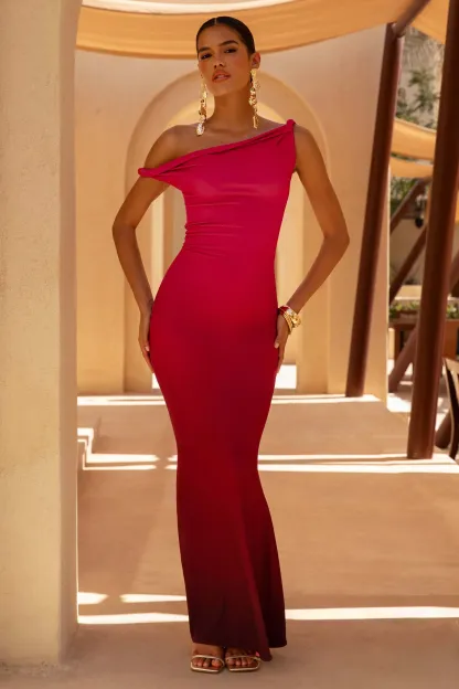 If you're wanting a look that will turn heads wherever you go this season. Exotic is your perfect solution. Crafted from a premium stretch jersey with a berry ombre finish. this sculpting maxi dress holds all the right tools for seeing you through every event on your social calendar.