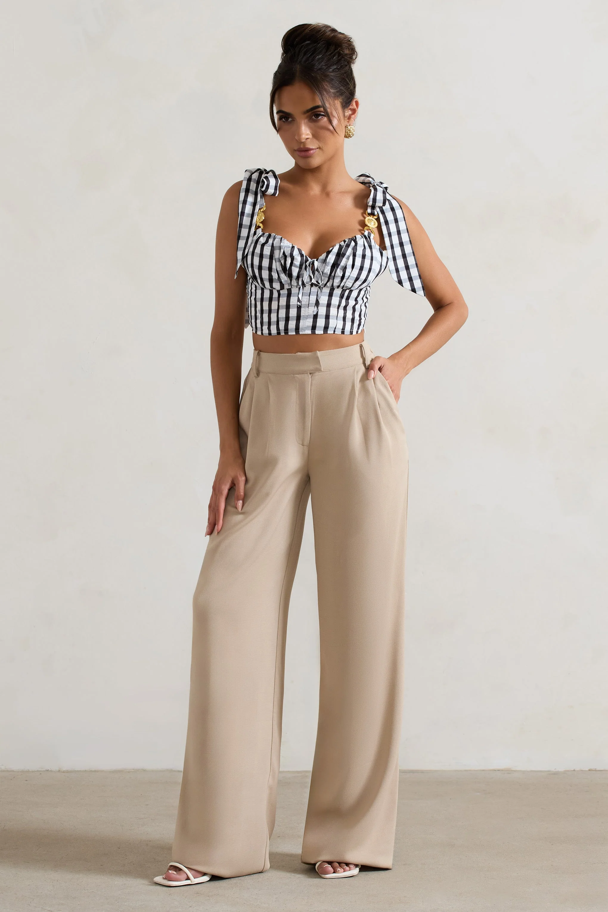 Treat your wardrobe this season with a staple pair of trousers like Hastings. Arriving in a neutral stone shade of a premium textured woven. these versatile wide leg trousers can be styled with any top you choose.