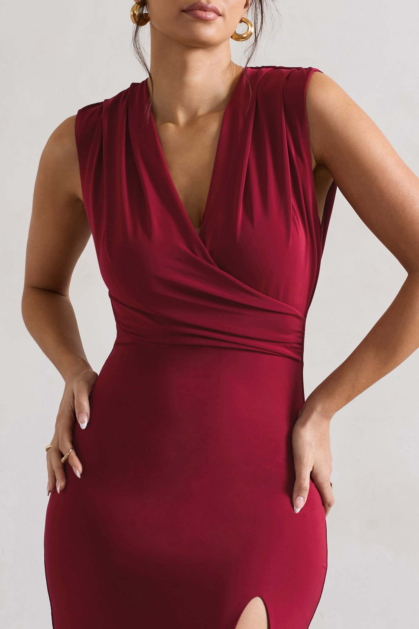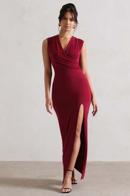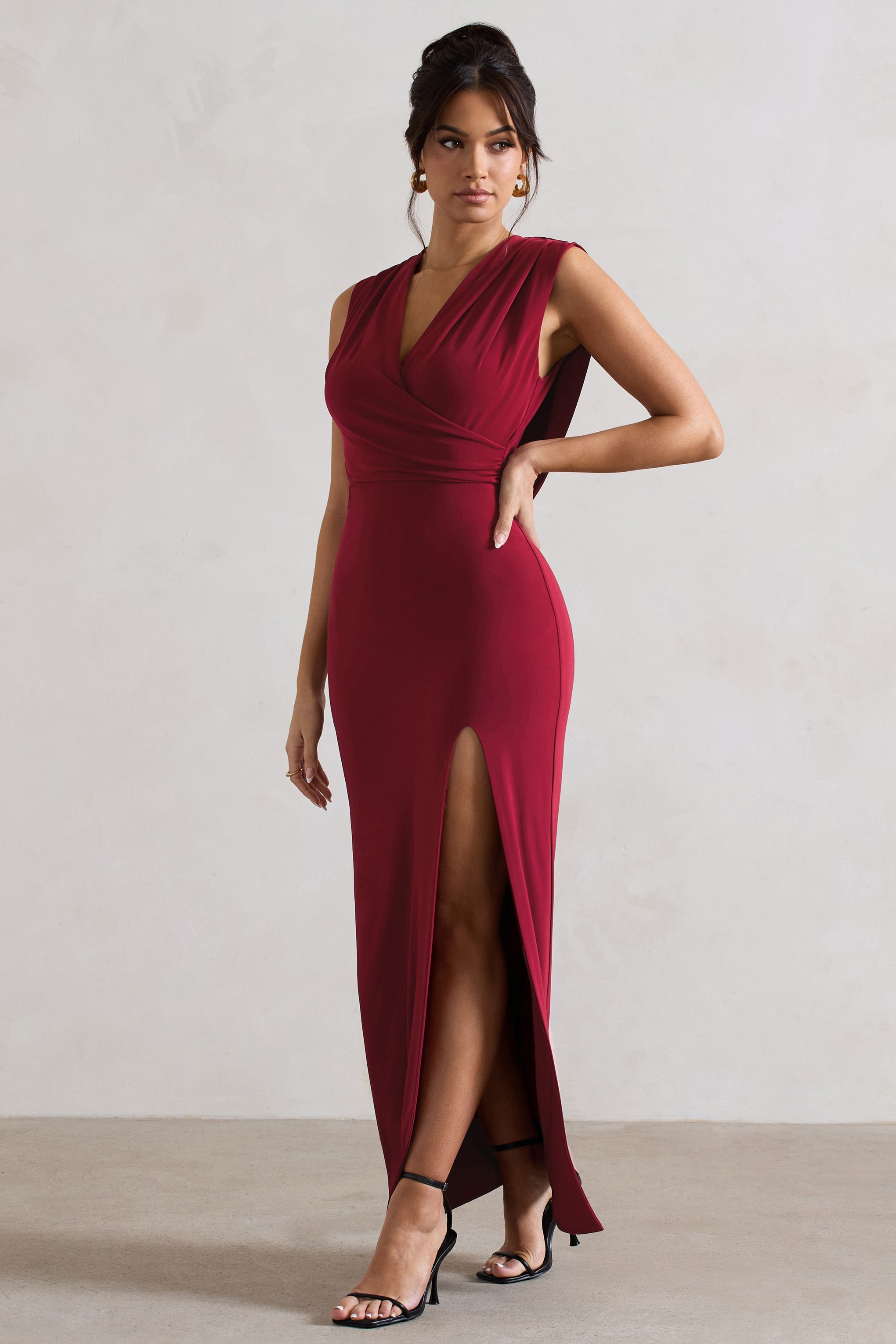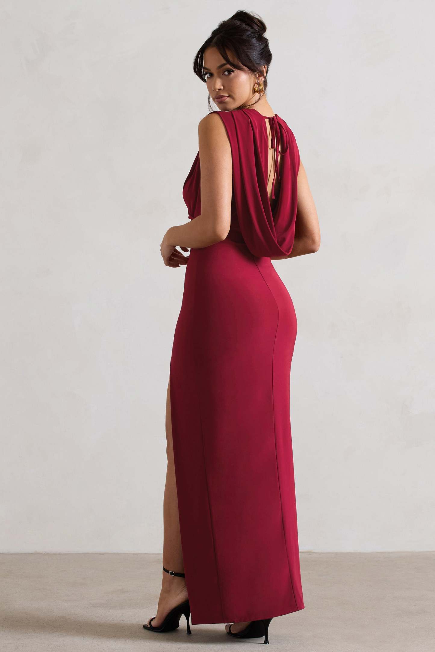 Honour Berry V-Neck Split Maxi Dress With Cowl-Back
