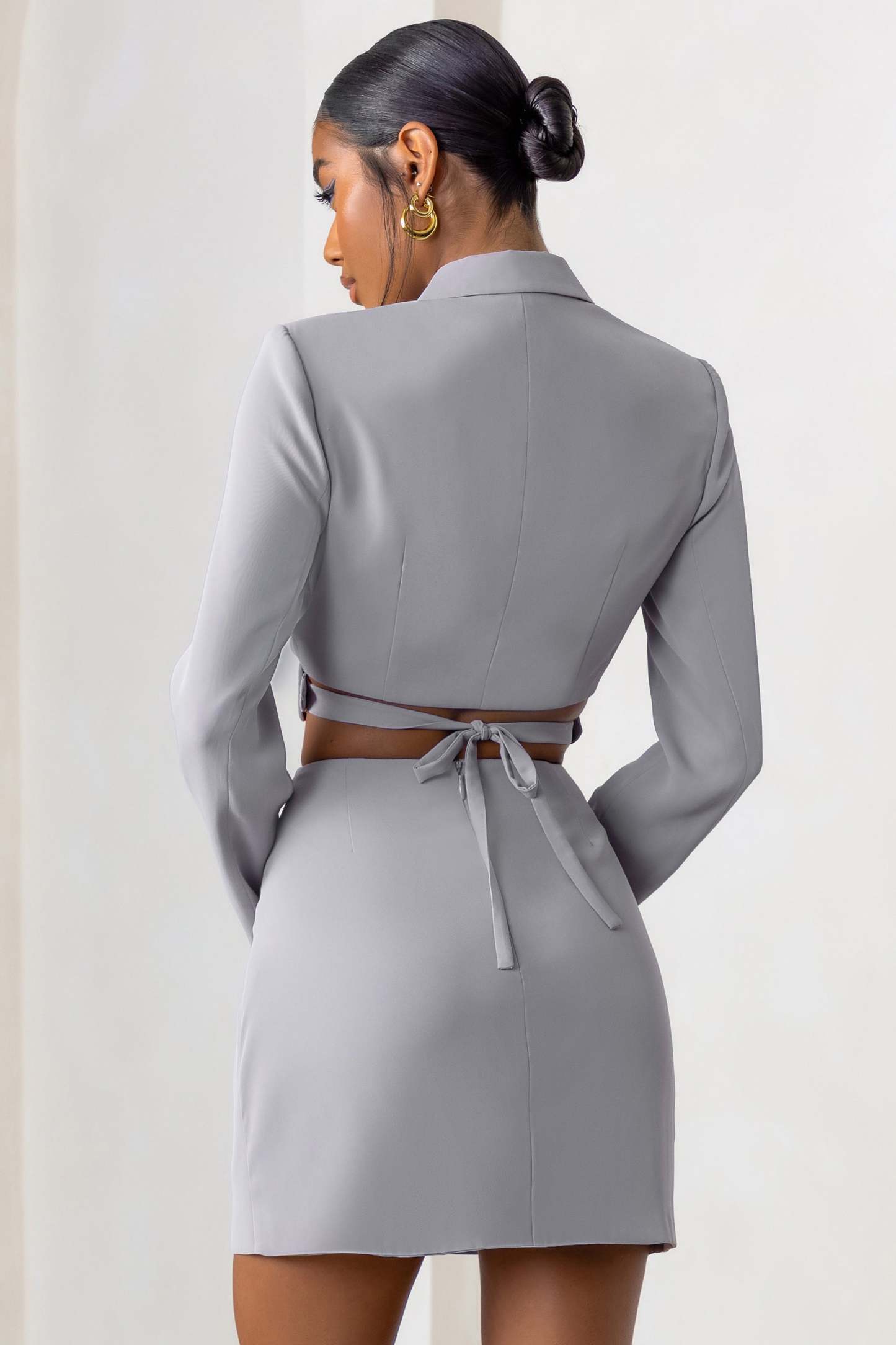 Blur the lines between your day plans and night plans with our gorgeous Jet Set mini skirt. Designed with our premium crepe fabric in a soft dove grey shade. this mini skirt will be your new wardrobe favourite with its high waist fit and bold buckle detail that matches to perfection with our gorgeous Privilege crop blazer. Looking for a casual look? Style this mini skirt with an oversized T-shirt and trainers or go all out with its matching blazer and heeled sandals. Whatever the style. Club L got you covered with staple looks!