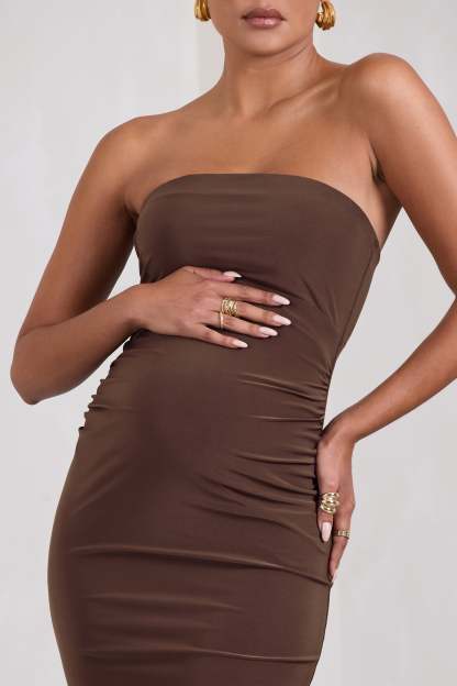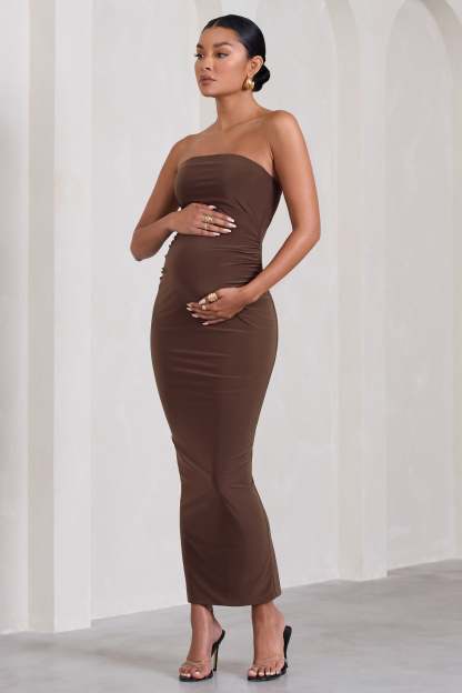 Juniper Chocolate Brown Strapless Maternity Maxi Dress