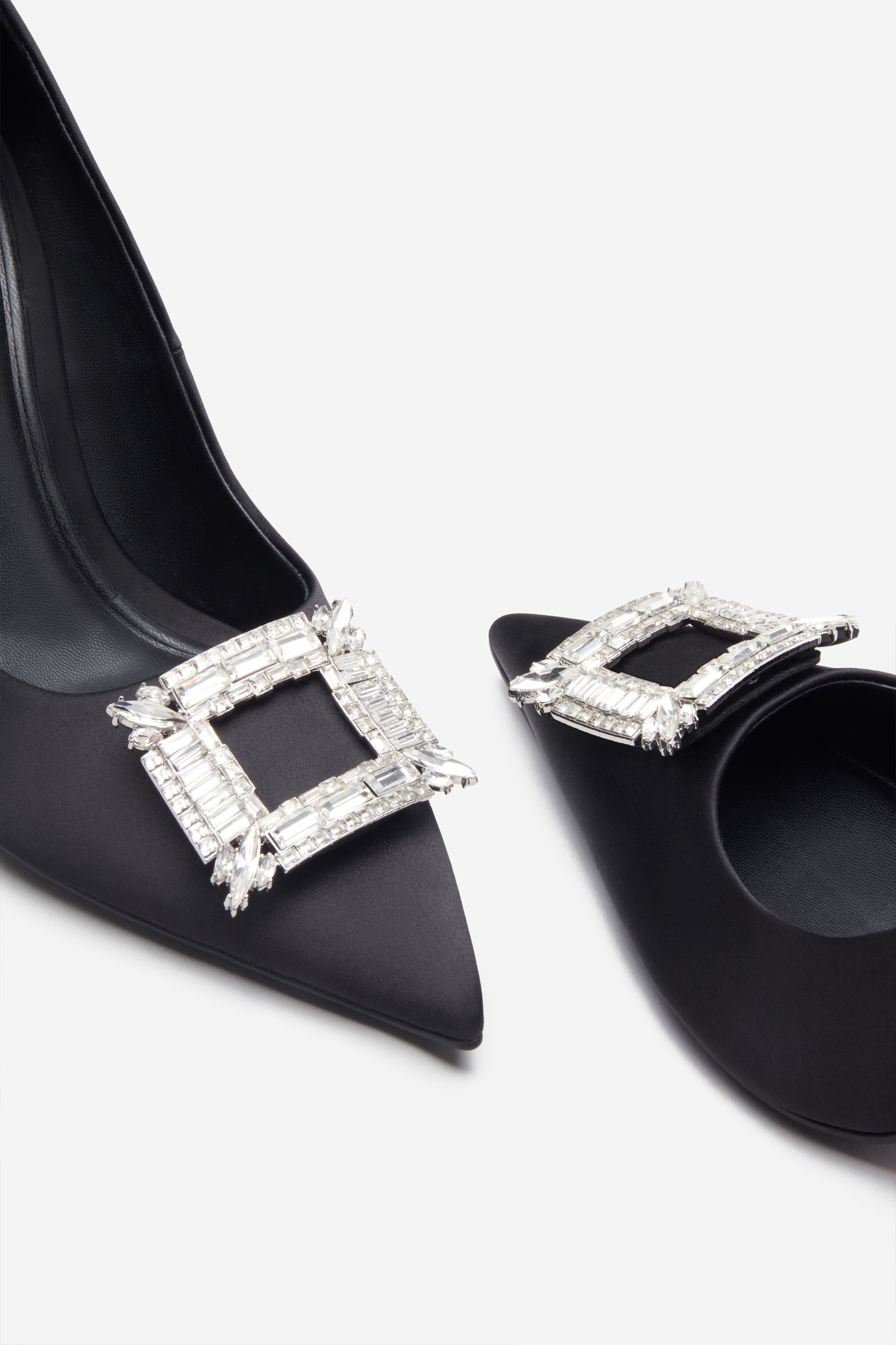 Lawless Black Satin Pointed Court Heels With Diamante Brooches