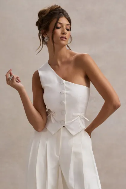 Cream One Shoulder Tailored Top With Bows