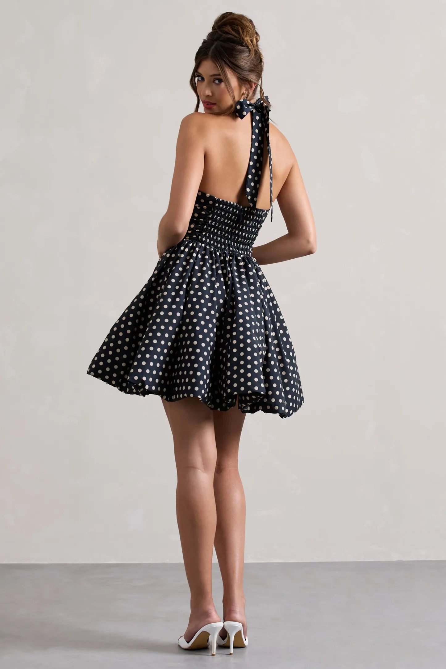 Navy Polka Dot Halter-Neck Mini Dress