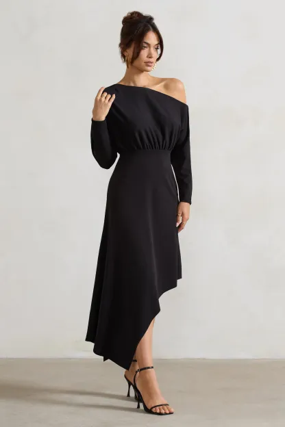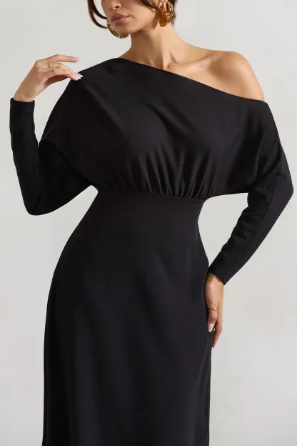 Black Asymmetric Long-Sleeve Maxi Dress