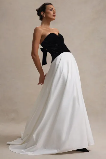 Black & Cream Sweetheart Corset Split Maxi Dress