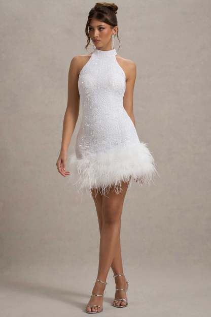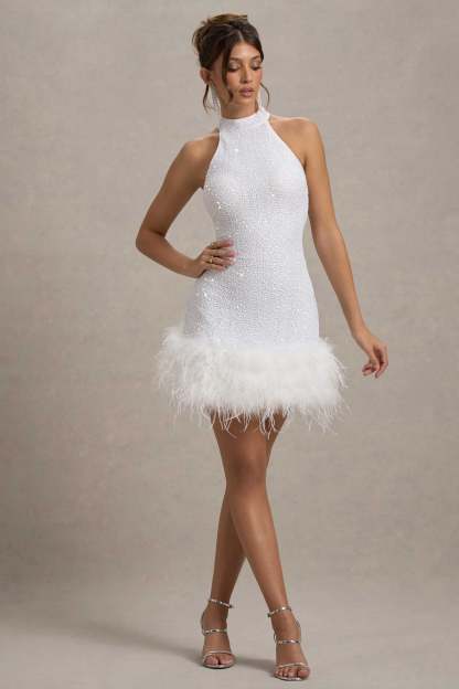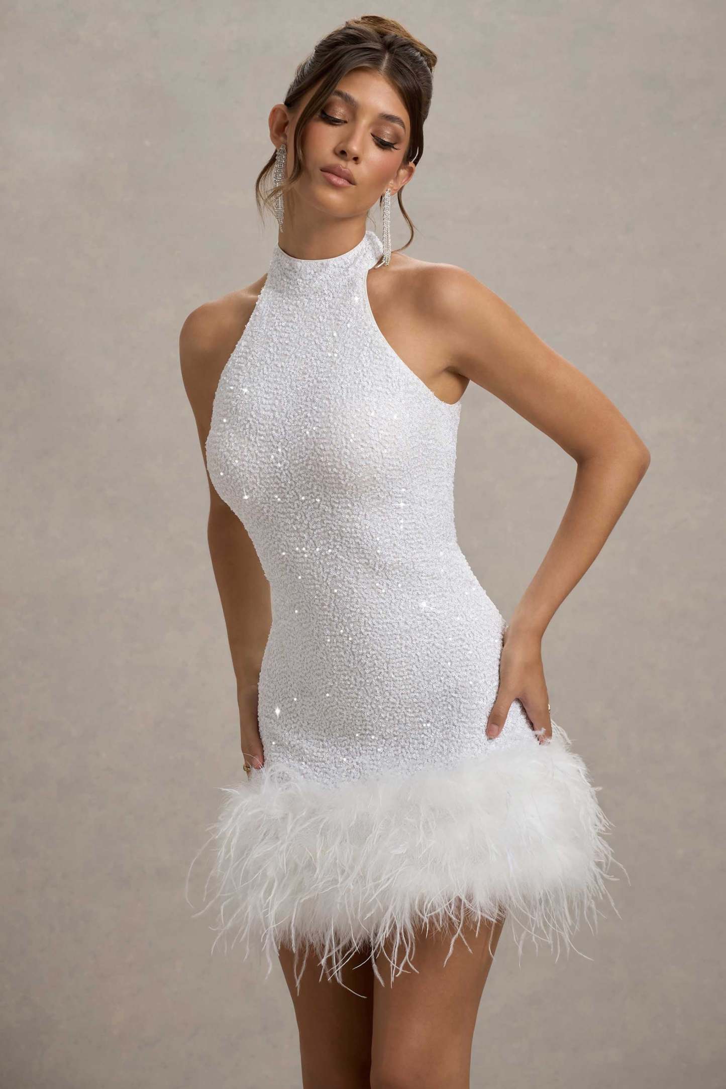 Premium sequin and feather in White (95% Polyester. 5% Elastane)