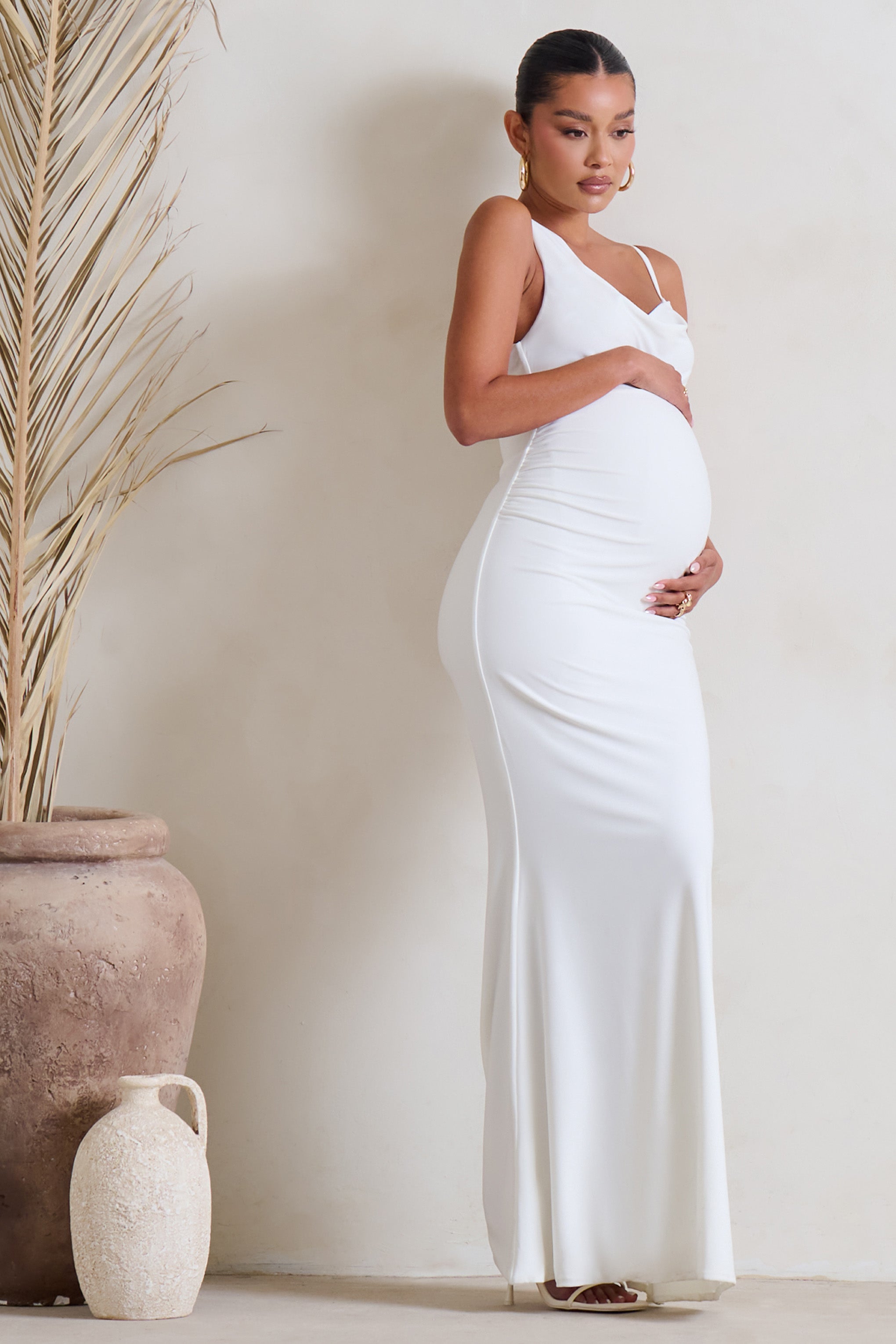 Phantasy White Maternity Cowl Neck Maxi Dress