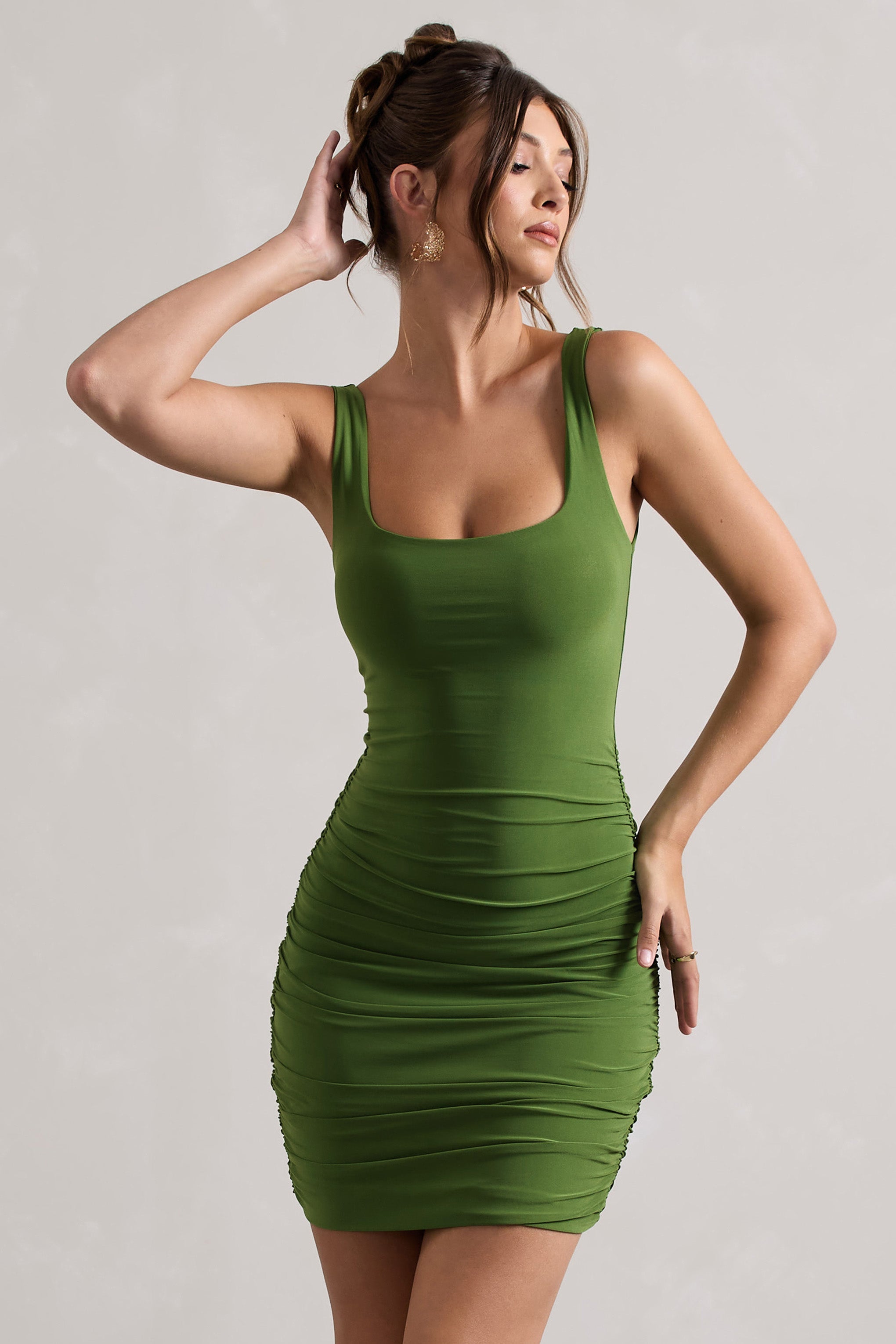Porto Green Square-Neck Strappy Bodycon Mini Dress
