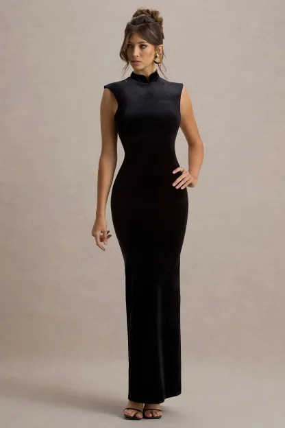 Black Velvet High-Neck Maxi Dress