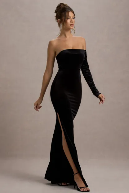 Black Velvet One-Sleeve Maxi Dress