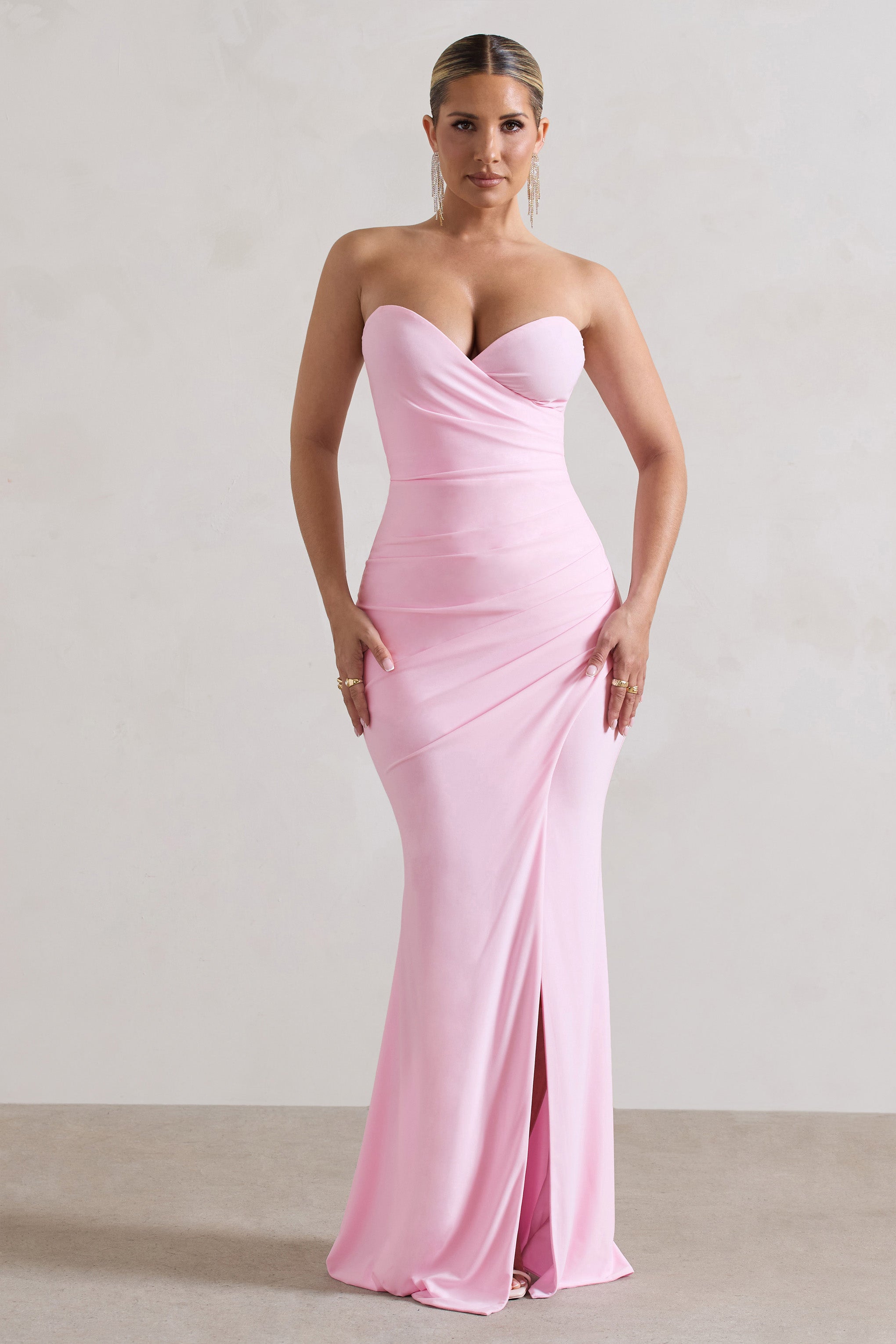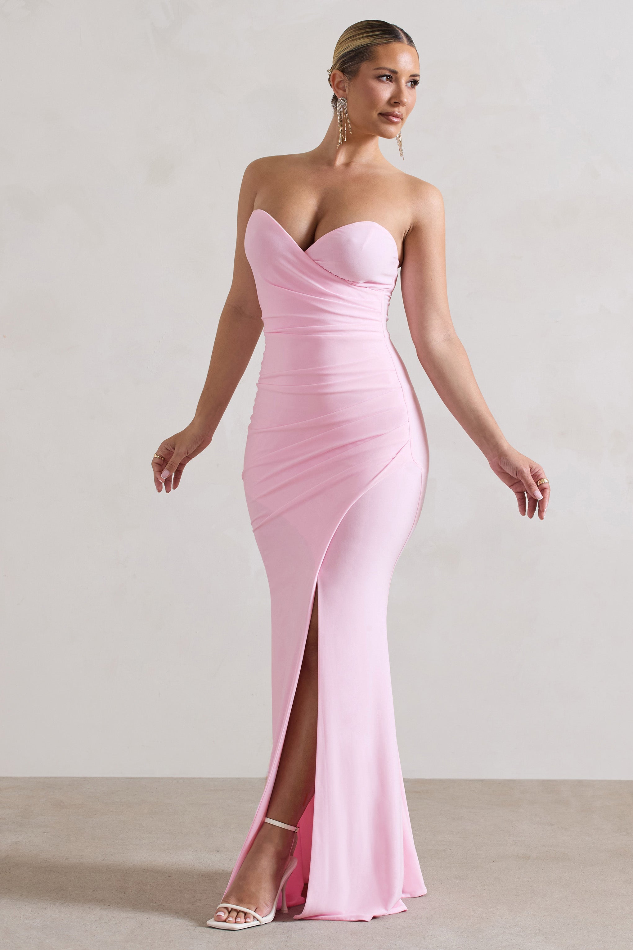 Saphira Pink Gathered Corset Style Split Maxi Dress