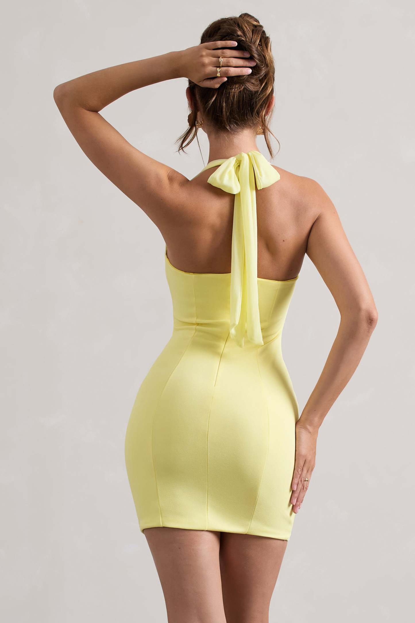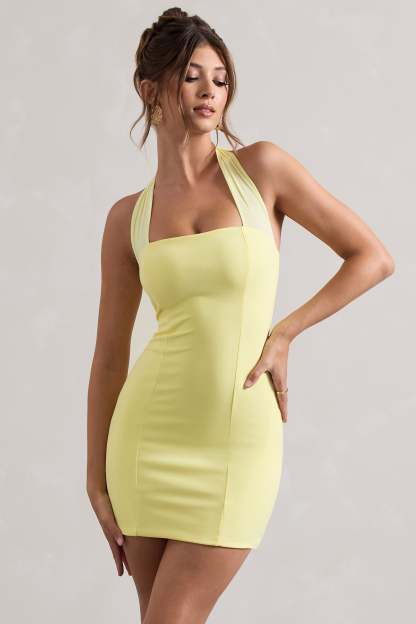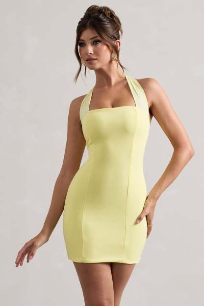 In need of a summer mini dress? Soul is the perfect new season staple to add to your wardrobe. This lemon mini is carefully cut in our premium stretch jersey to fit you like a glove. With a self-tie halter neck. pair this style with a sleek updo to show it off.