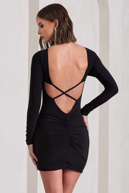 Stassi Black Bodycon Twist Neck Mini Dress With Strappy Back