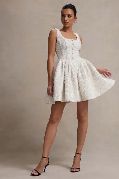 Cream Boucle Square-Neck Mini Dress