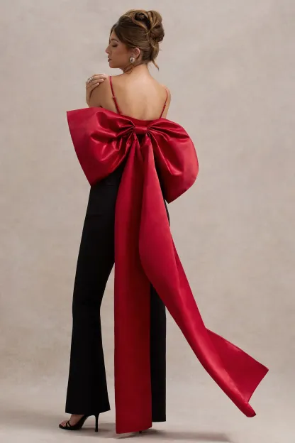 Red Satin Crop Top With Oversized Satin Bow