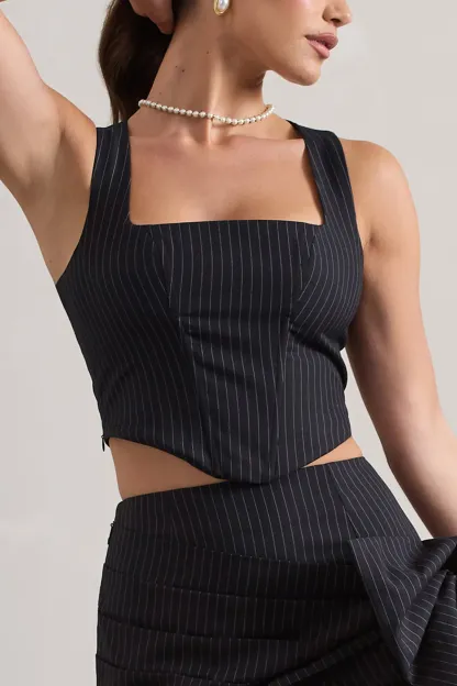 Navy Pinstripe Structured Corset Top
