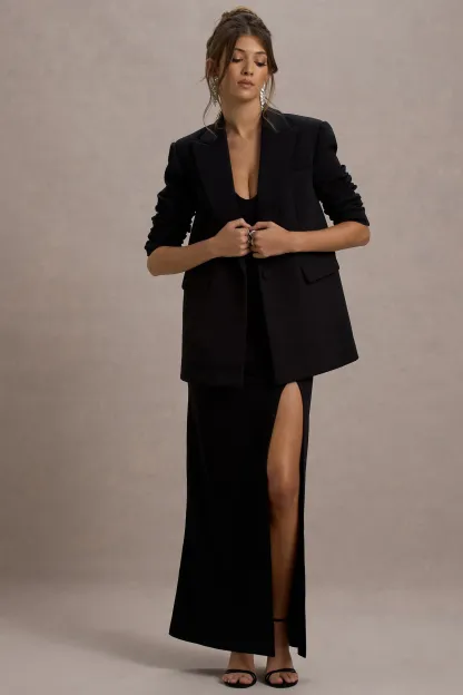 Black Plunge-Neck Boxy Oversized Blazer