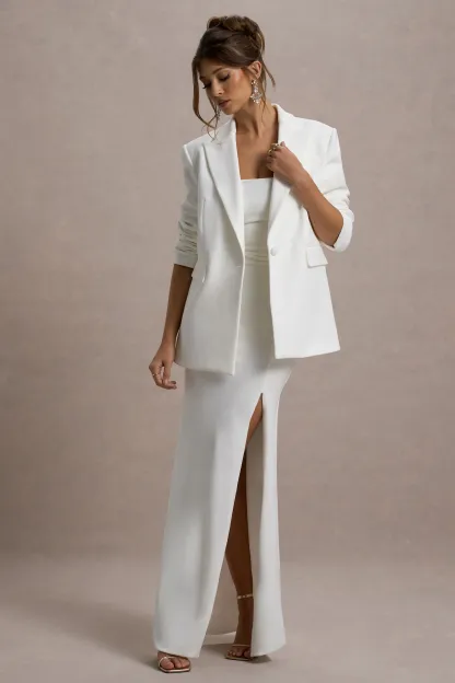 White Plunge-Neck Boxy Oversized Blazer