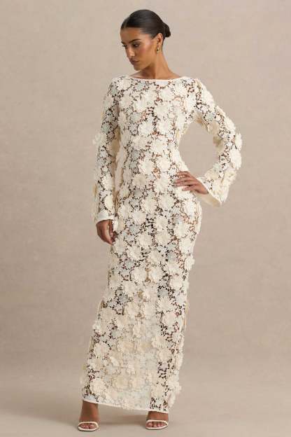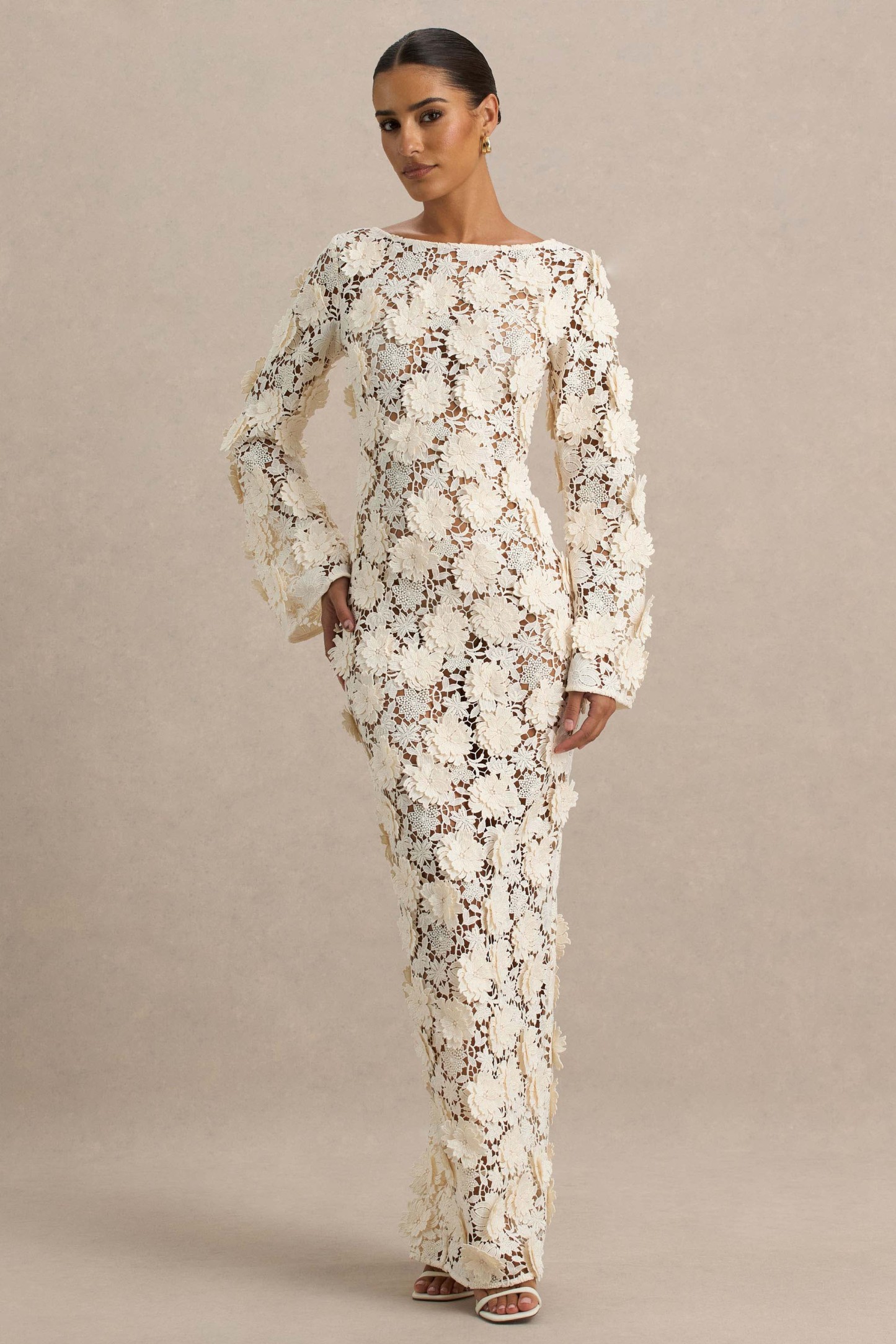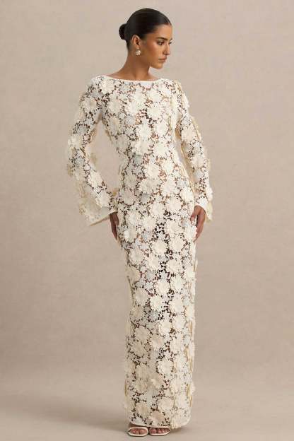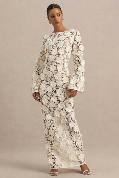 Elevate your summer attire with Viper. a must have in your suitcase this season. Curated from a cream shade of our premium 3D lace. this will make all your beach looks effortlessly chic. Featuring an elegant boat neckline and a striking scoop open back. this piece strikes the perfect balance of elegance and allure. Finished with statement bell sleeves that elevate this look even further. Style this for your next beach club day over a bright bikini. for a look that'll turn heads.