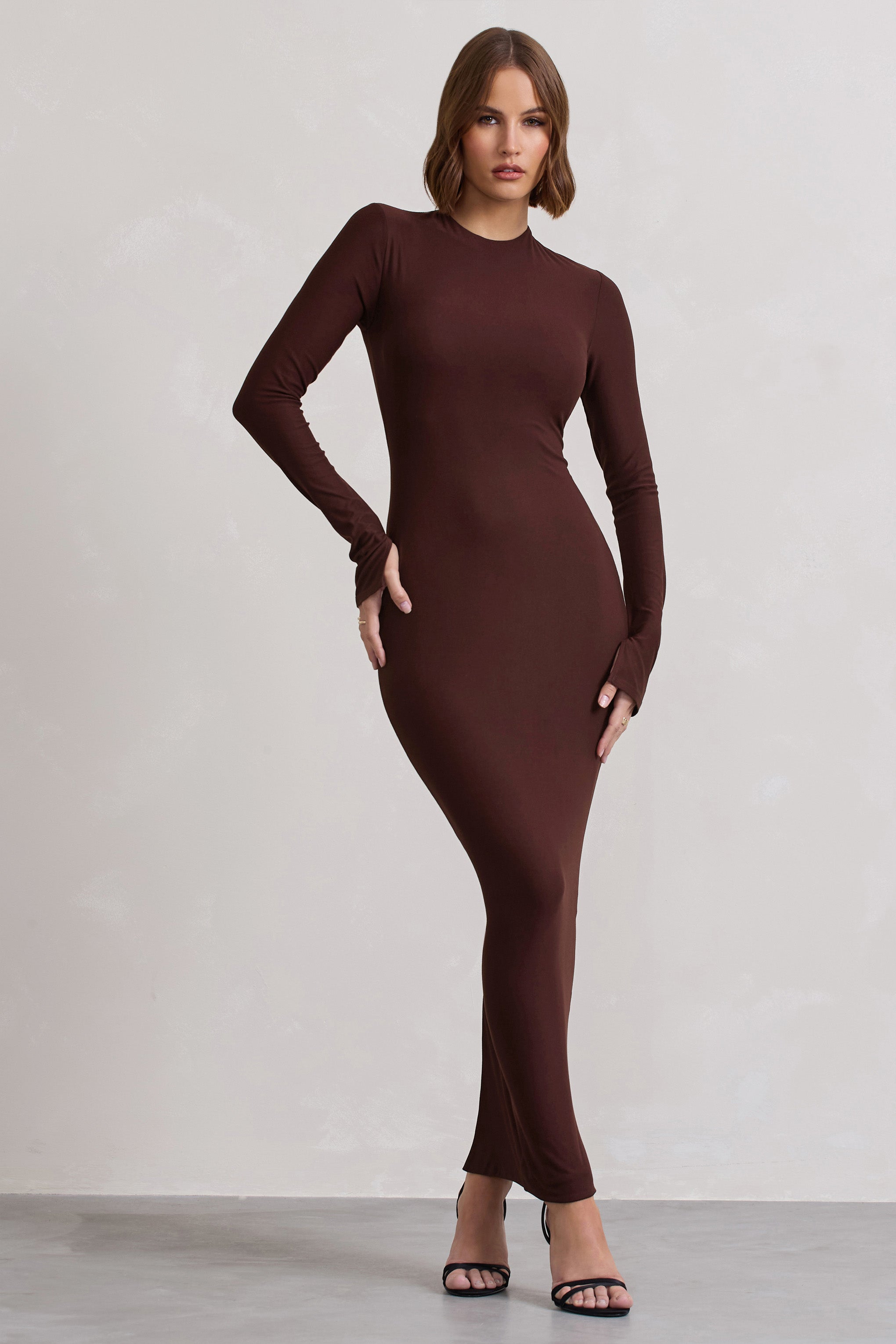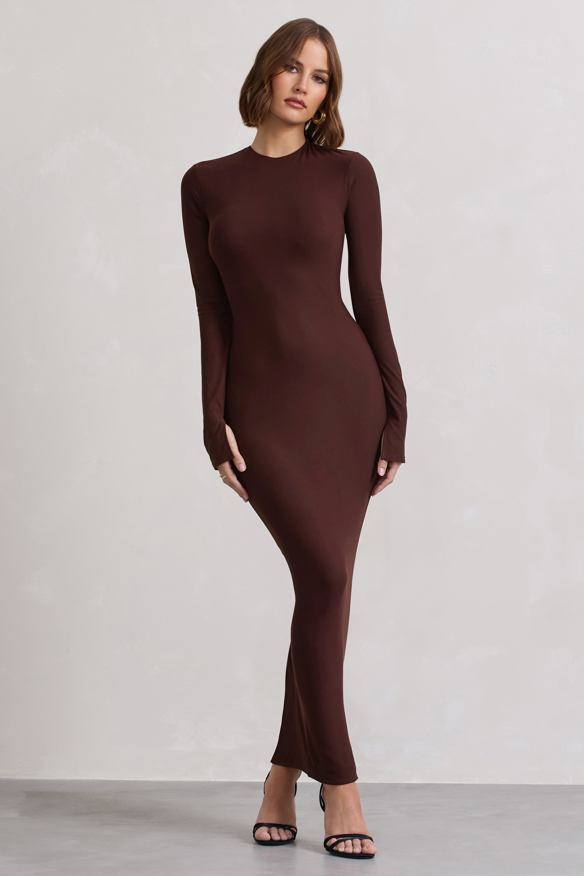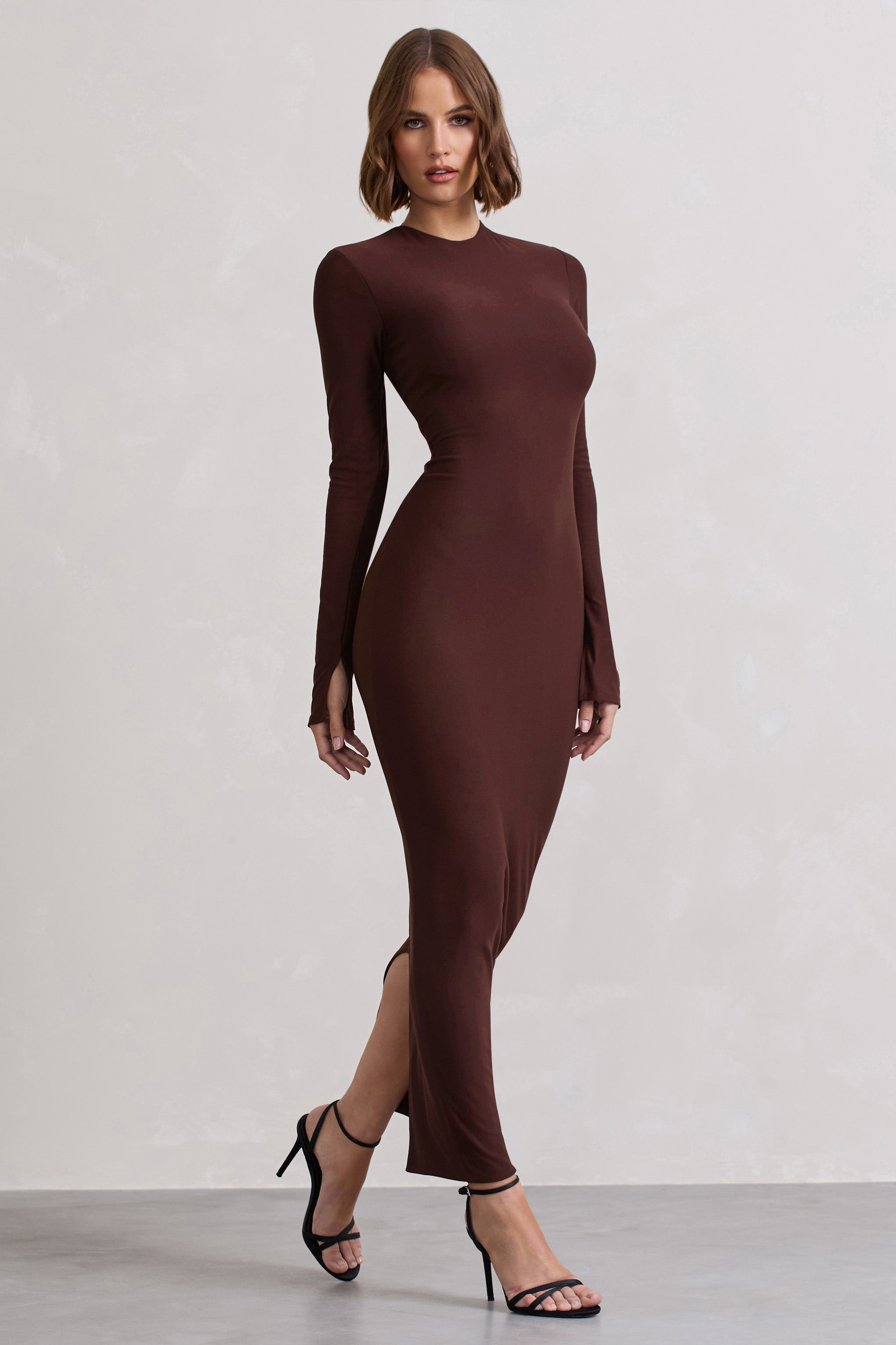 Wonder Chocolate Brown Bodycon Long-Sleeve Maxi Dress