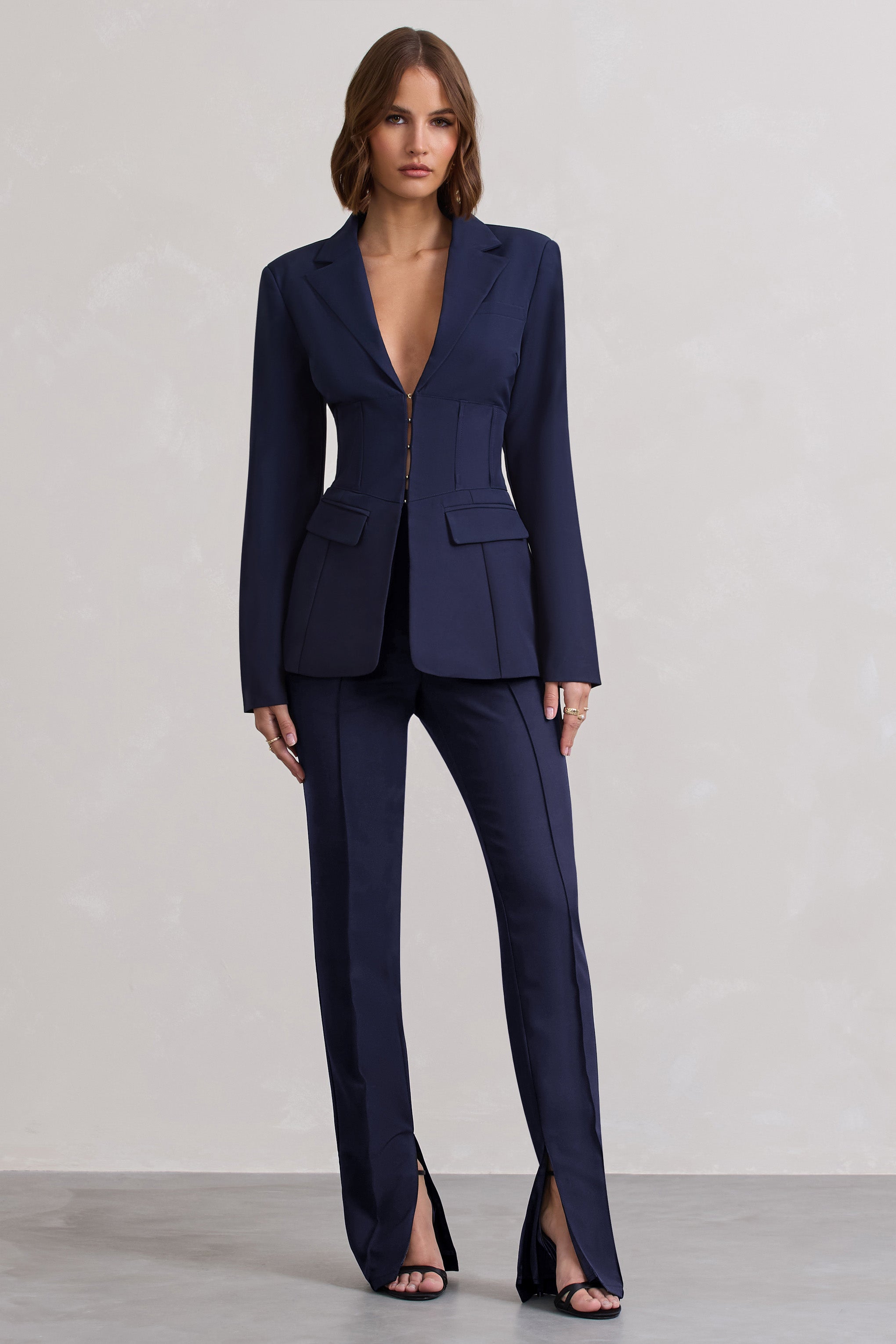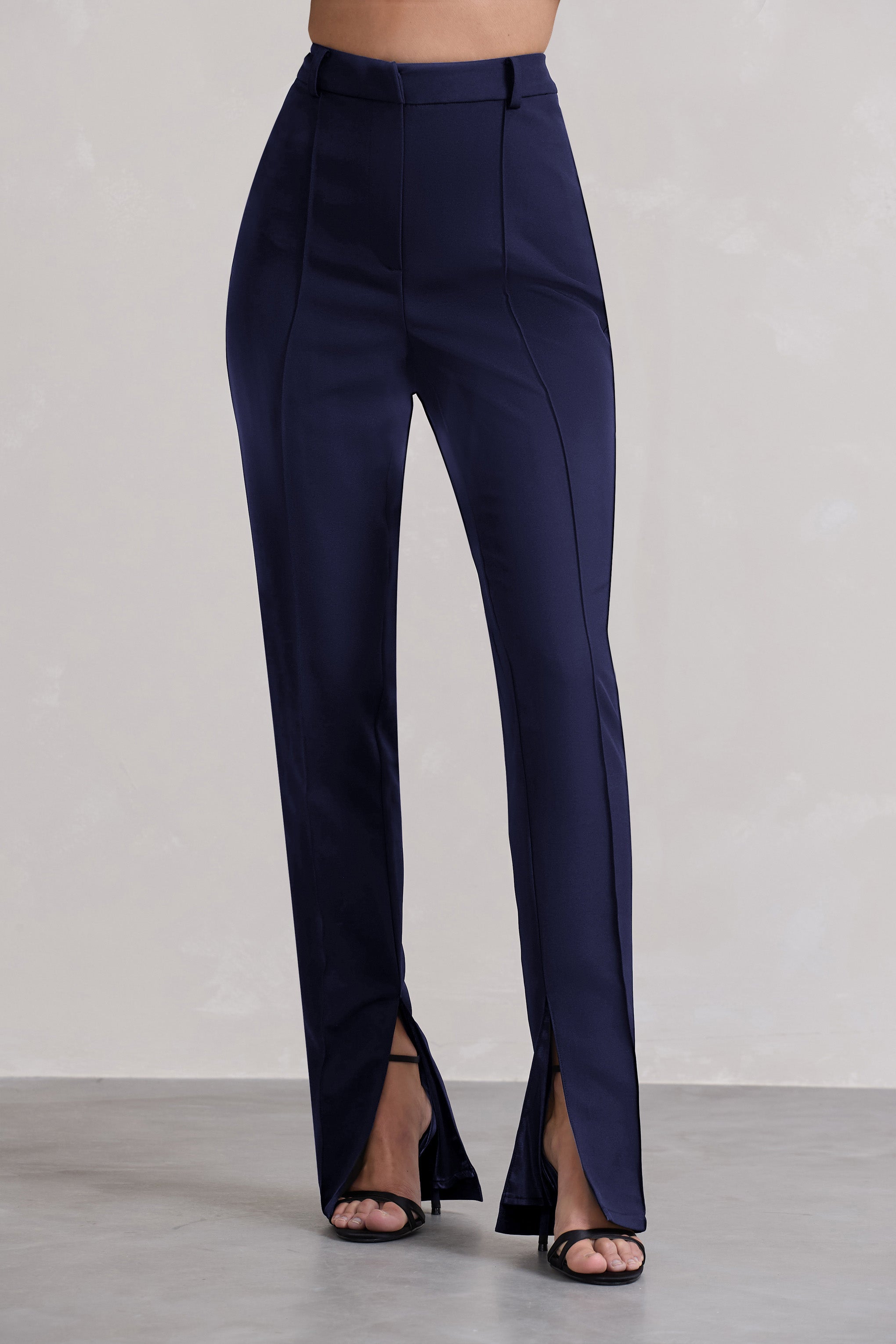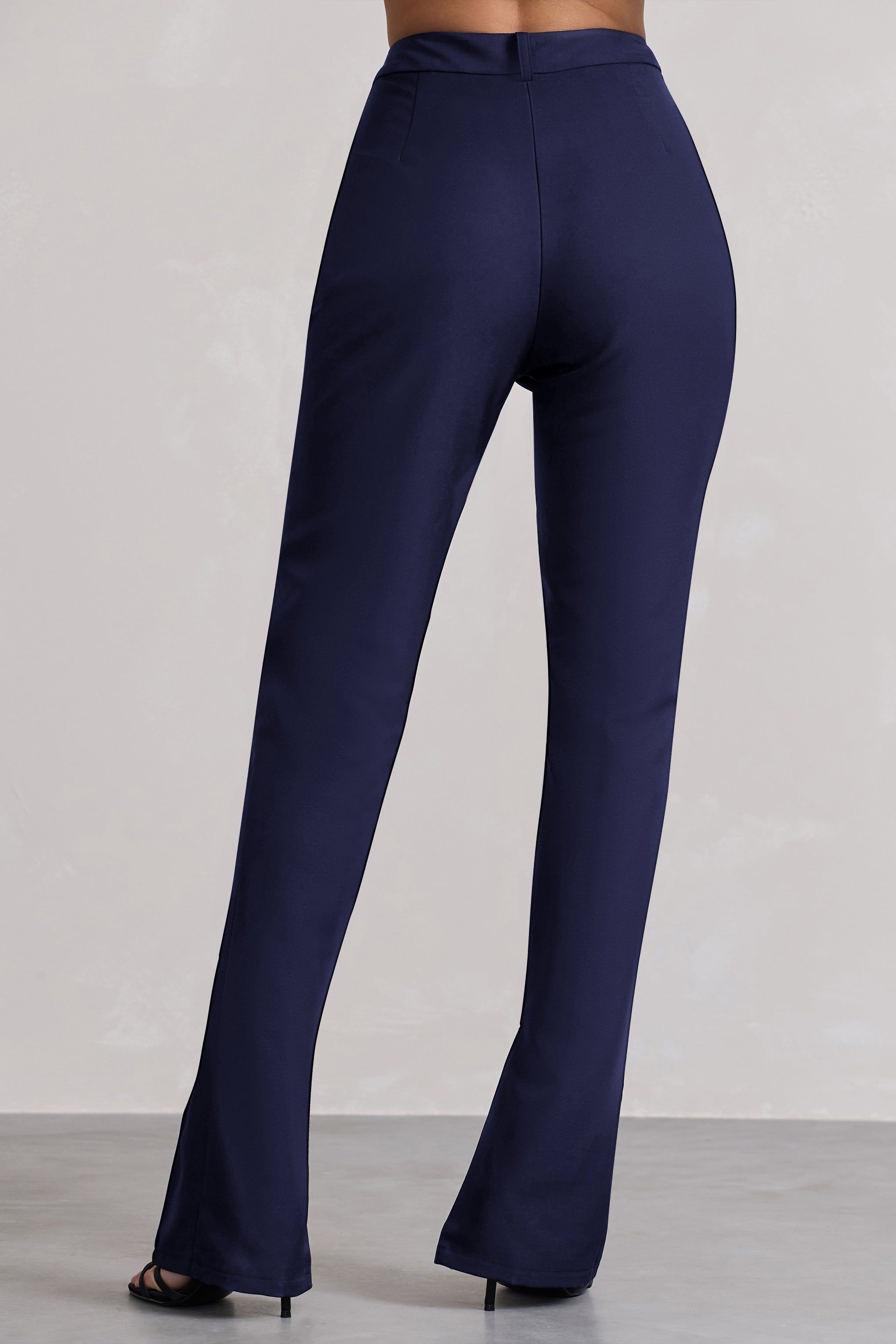 Destined for compliments. meet our bold Wonder Woman trousers in a classic navy. a wardrobe staple to match every occasion. Featuring a high waist fit to elongate your beautiful silhouette with a straight leg and trendy split hem to make a statement. Cut from our premium crepe fabric. these trousers can be worn with an oversized t-shirt and trainers to run some errands looking cute. or with our beautiful Valeria crop top perfect for a girl's night out. Step in style on any occasion with this masterpiece!